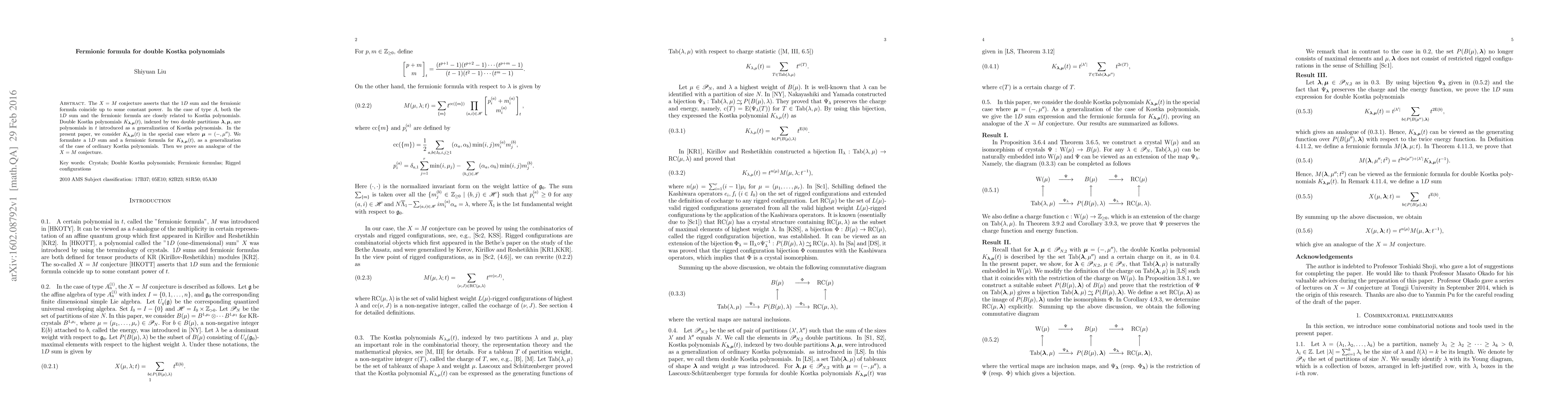 This paper formulates a $1D$ sum and a fermionic formula for double Kostka polynomials $K_{\Bla,\Bmu}(t)$ when $\Bmu=(-,\mu'')$. It proves an analogue of the $X=M$ conjecture for these polynomials, generalizing results for ordinary Kostka polynomials.