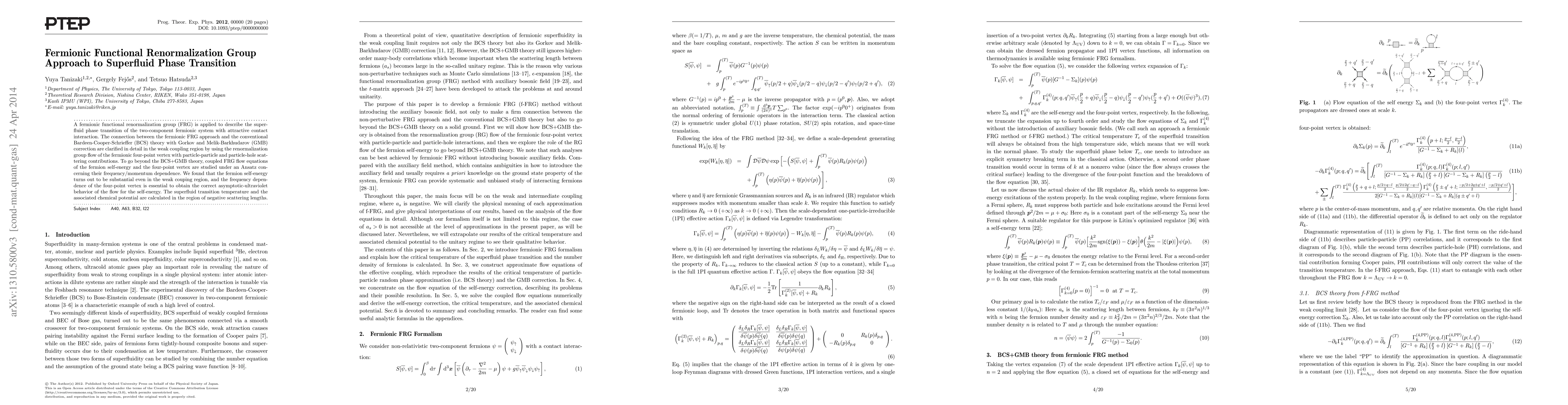 This paper applies the fermionic functional renormalization group (FRG) to study the superfluid phase transition in a two-component fermionic system with attractive interactions. It clarifies the connection between the FRG approach and BCS theory with GMB corrections in the weak coupling region, revealing that the fermion self-energy and the four-point vertex's frequency dependence are crucial for the correct transition behavior.