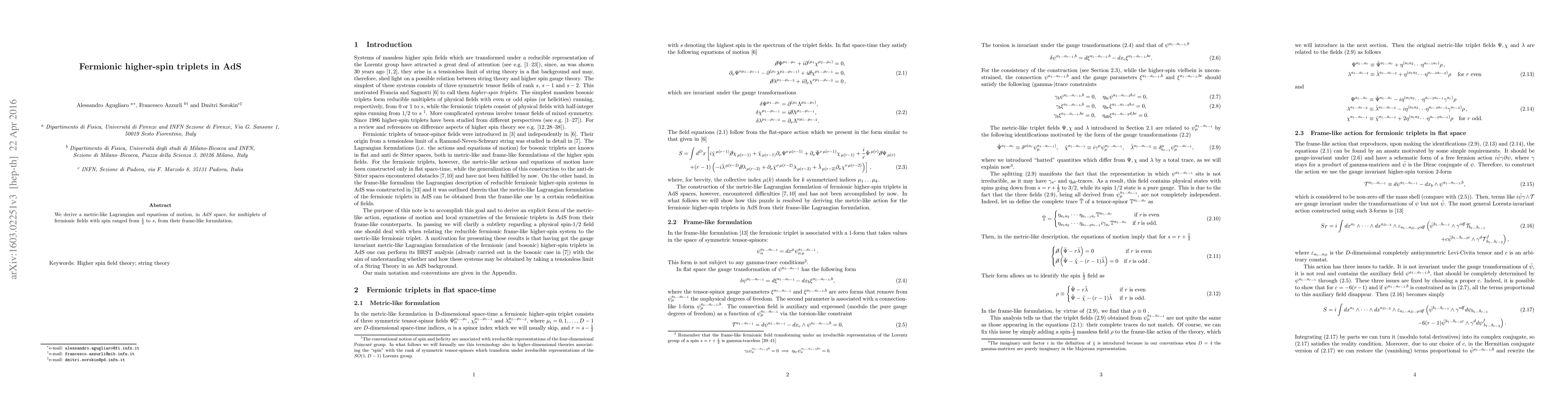 We derive a metric-like Lagrangian and equations of motion, in AdS space, for multiplets of fermionic fields with spin ranged from 1/2 to s, from their frame-like formulation.