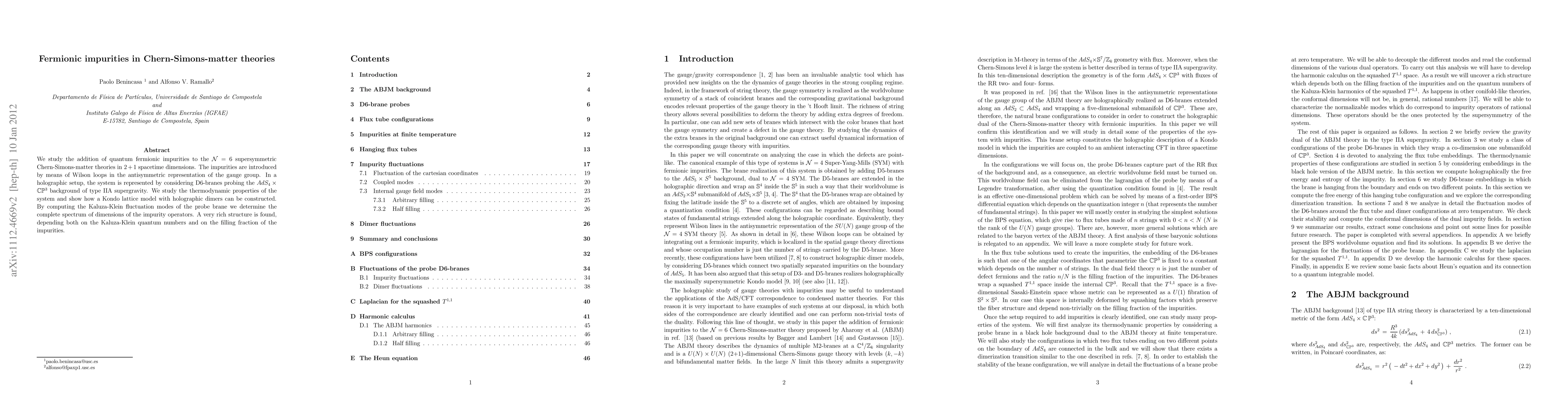 This paper investigates the thermodynamic properties of N=6 supersymmetric Chern-Simons-matter theories with added fermionic impurities, represented by Wilson loops. Using a holographic approach with D6-branes in an AdS_4 x CP^3 background, the authors construct a Kondo lattice model and determine the spectrum of impurity operators through Kaluza-Klein fluctuations.