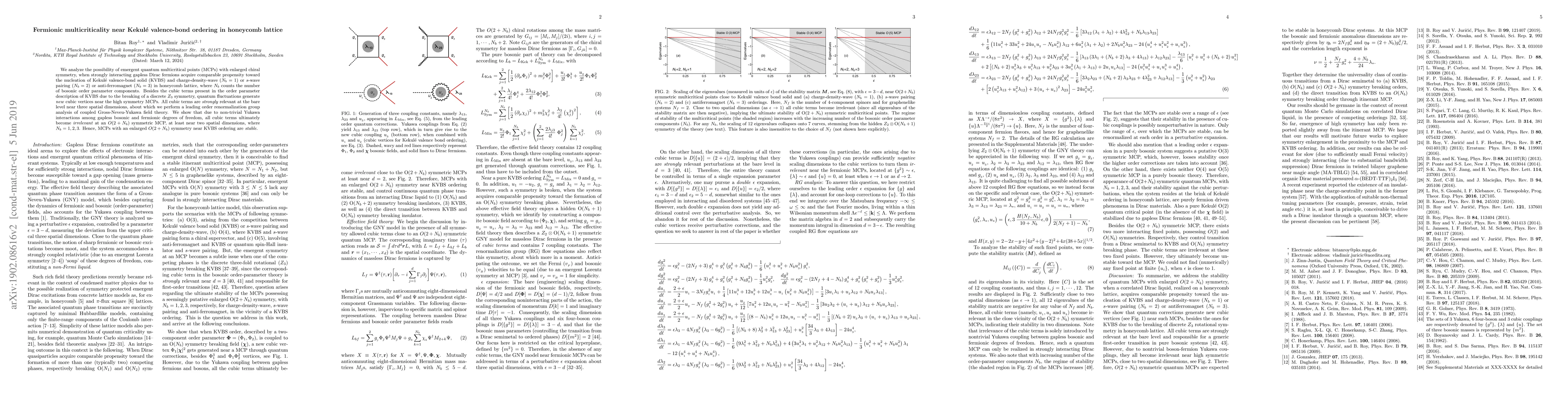 Researchers explore quantum multicritical points near a specific lattice arrangement, finding that these points can exhibit enlarged symmetry due to interactions between fermions and bosons, leading to stable multicriticality.
