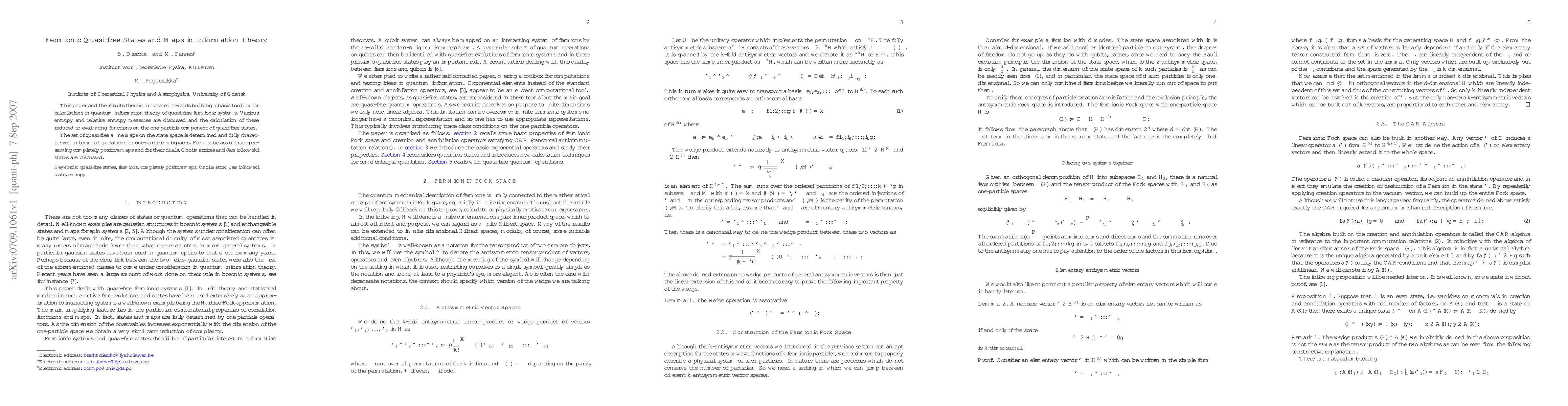This paper and the results therein are geared towards building a basic toolbox for calculations in quantum information theory of quasi-free fermionic systems. Various entropy and relative entropy measures are discussed and the calculation of these reduced to evaluating functions on the one-particle component of quasi-free states. The set of quasi-free affine maps on the state space is determined and fully characterized in terms of operations on one-particle subspaces. For a subclass of trace preserving completely positive maps and for their duals, Choi matrices and Jamiolkowski states are discussed.