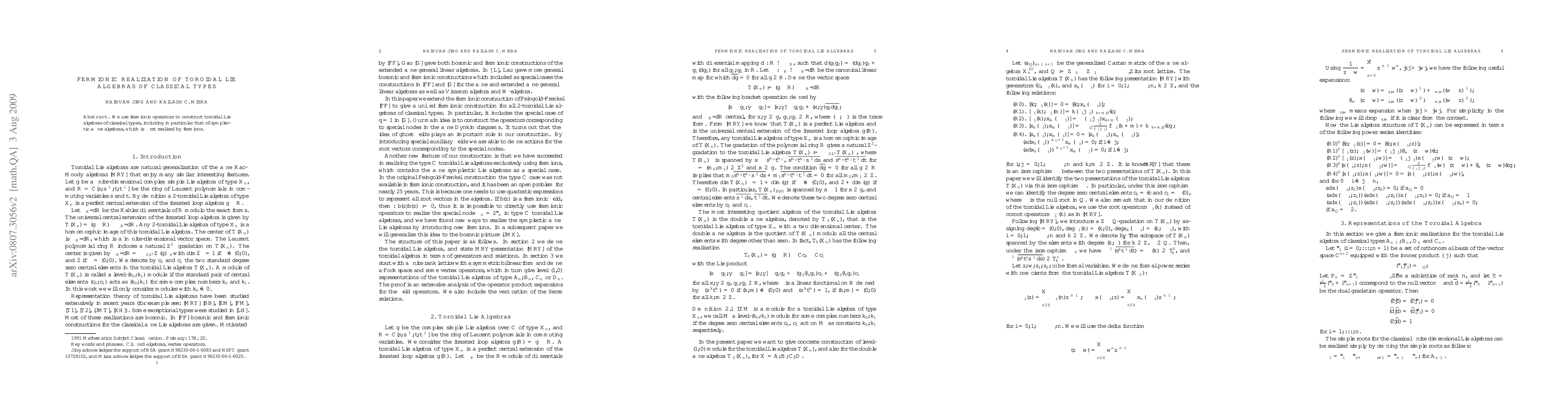 This research constructs toroidal Lie algebras of classical types using fermionic operators, achieving the first fermionic realization of symplectic affine algebras. This method provides a novel approach to understanding these complex algebraic structures.