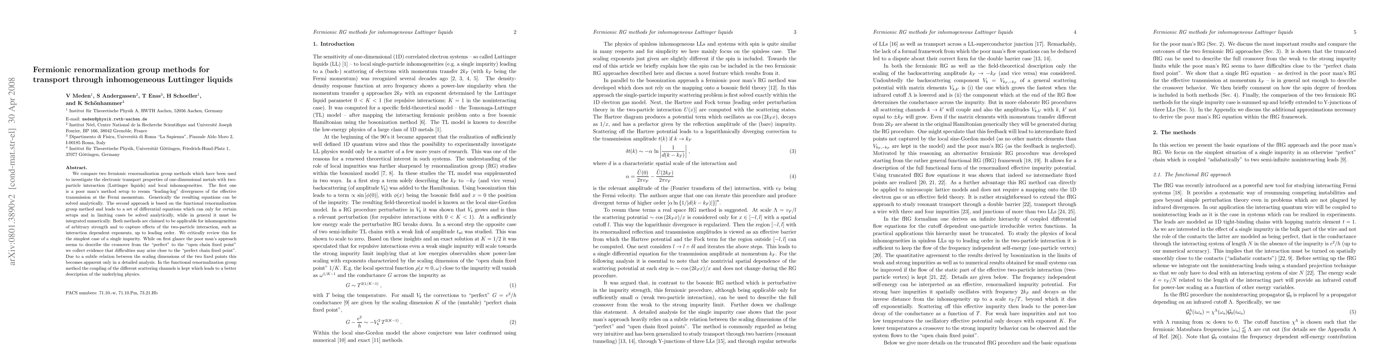 This paper compares two fermionic renormalization group methods for studying electronic transport in Luttinger liquids with local inhomogeneities. The first method resums leading-log divergences analytically, while the second, based on functional renormalization group, generally requires numerical integration but better captures interaction effects. Both methods aim for arbitrary inhomogeneity strength, but the poor man's method may struggle near the perfect chain fixed point due to scaling dimension subtleties.