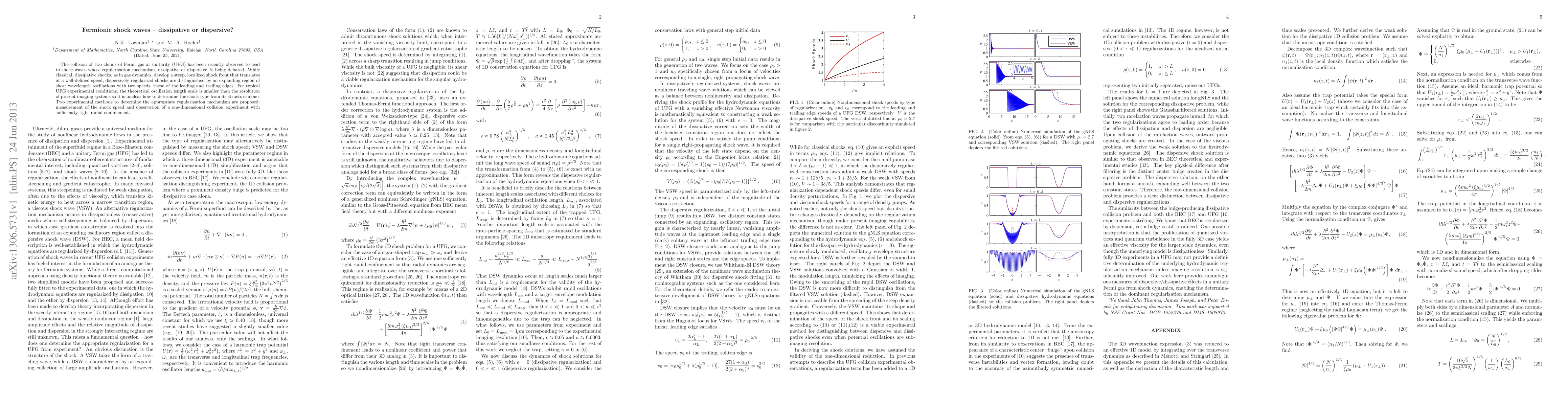 This paper investigates the nature of shock waves in collisions of ultracold Fermi gas clouds, debating whether they are dissipative or dispersive. Proposed methods to determine the shock type include measuring shock speed and observing one-dimensional collisions under tight confinement.