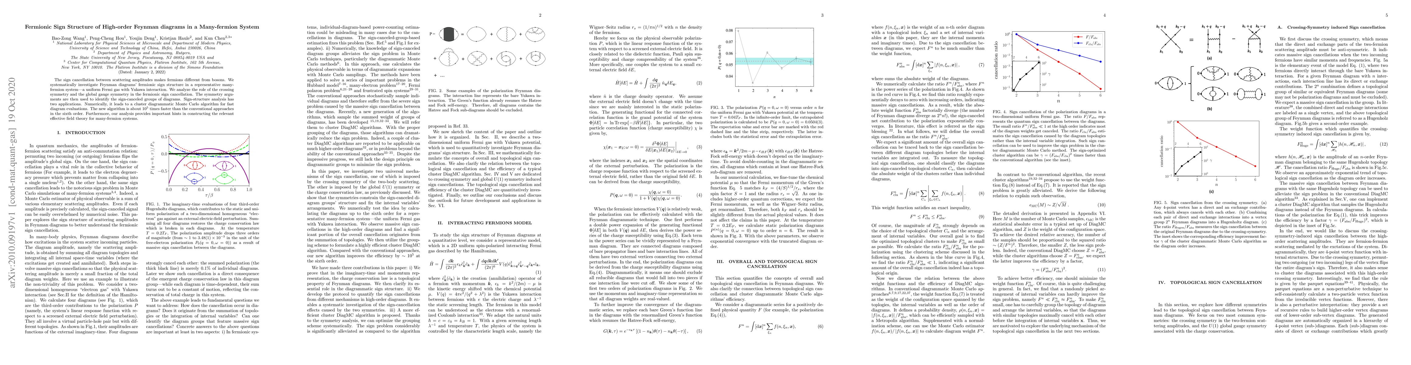 This paper investigates the fermionic sign structure in high-order Feynman diagrams for a uniform Fermi gas with Yukawa interaction, focusing on the role of symmetry in sign cancellation. The findings lead to a significantly faster cluster diagrammatic Monte Carlo algorithm and offer insights into constructing effective field theories for many-fermion systems.