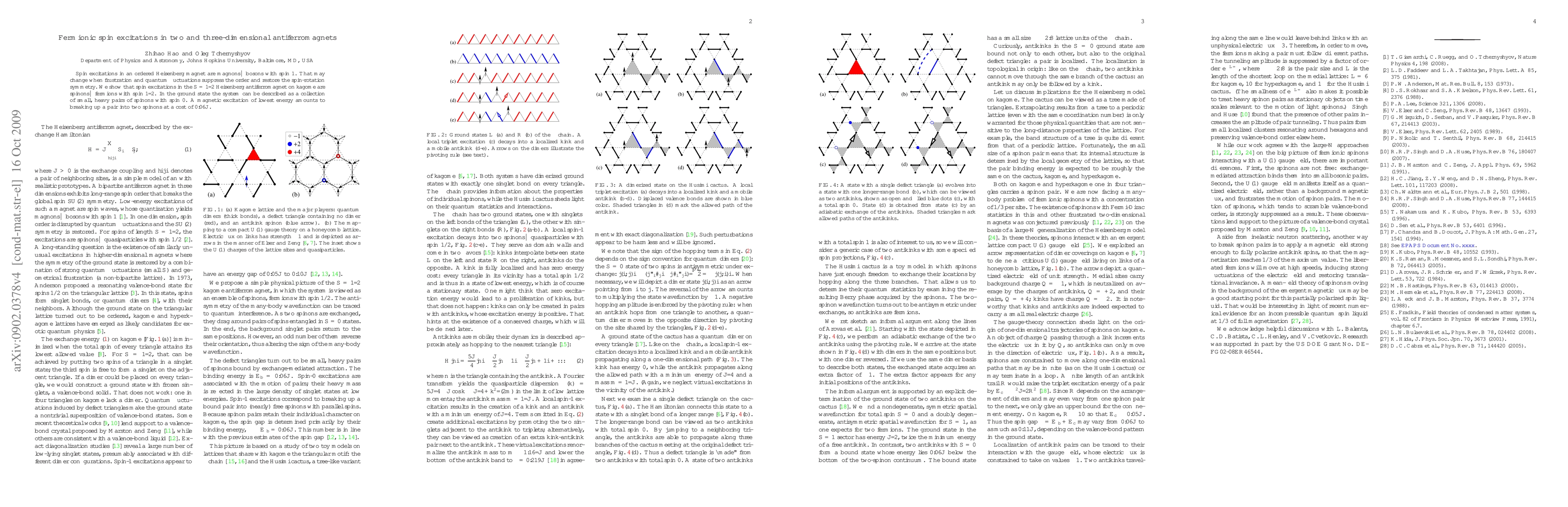 Spin excitations in an ordered Heisenberg magnet are magnons--bosons with spin 1. That may change when frustration and quantum fluctuations suppress the order and restore the spin-rotation symmetry. We show that spin excitations in the $S=1/2$ Heisenberg antiferromagnet on kagome are spinons--fermions with spin 1/2. In the ground state the system can be described as a collection of small, heavy pairs of spinons with spin 0. A magnetic excitation of lowest energy amounts to breaking up a pair into two spinons at a cost of $0.06 J$.