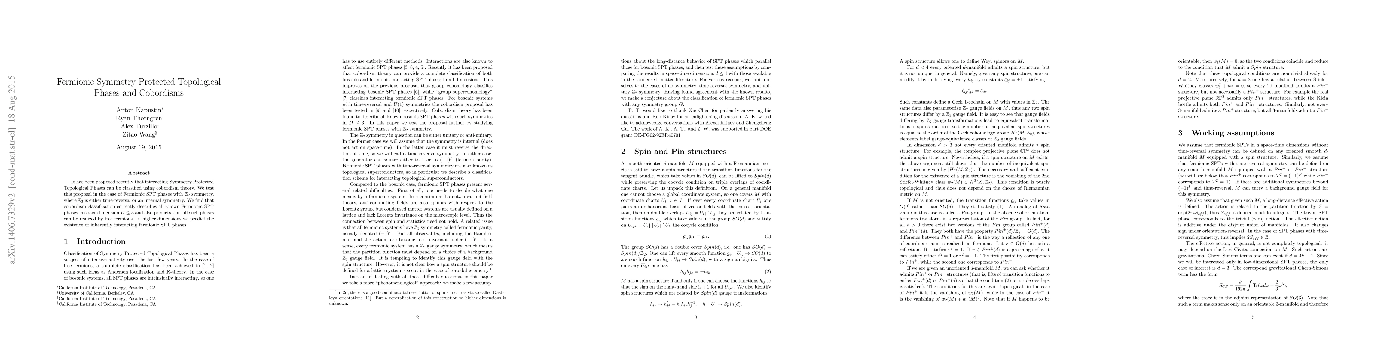 This paper classifies fermionic Symmetry Protected Topological (SPT) phases with Z/2 symmetry using cobordism theory, confirming its effectiveness for dimensions up to 3 and predicting the existence of inherently interacting phases in higher dimensions.