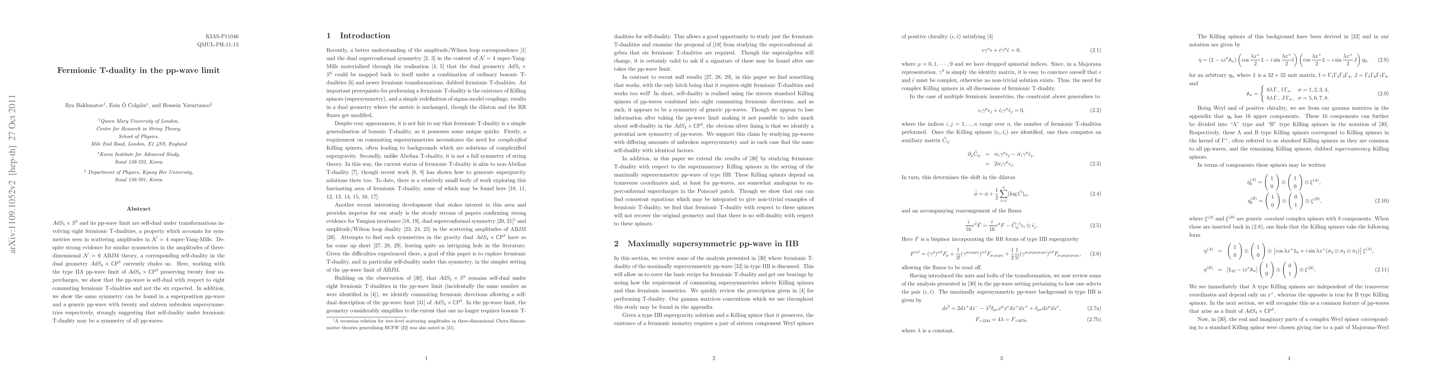 This research demonstrates that the pp-wave limit of AdS5 x S5 and AdS4 x CP3 exhibits self-duality under eight fermionic T-dualities, unlike the expected six. This finding supports the symmetries observed in N=4 super-Yang-Mills scattering amplitudes and hints at a potential symmetry in all pp-waves.