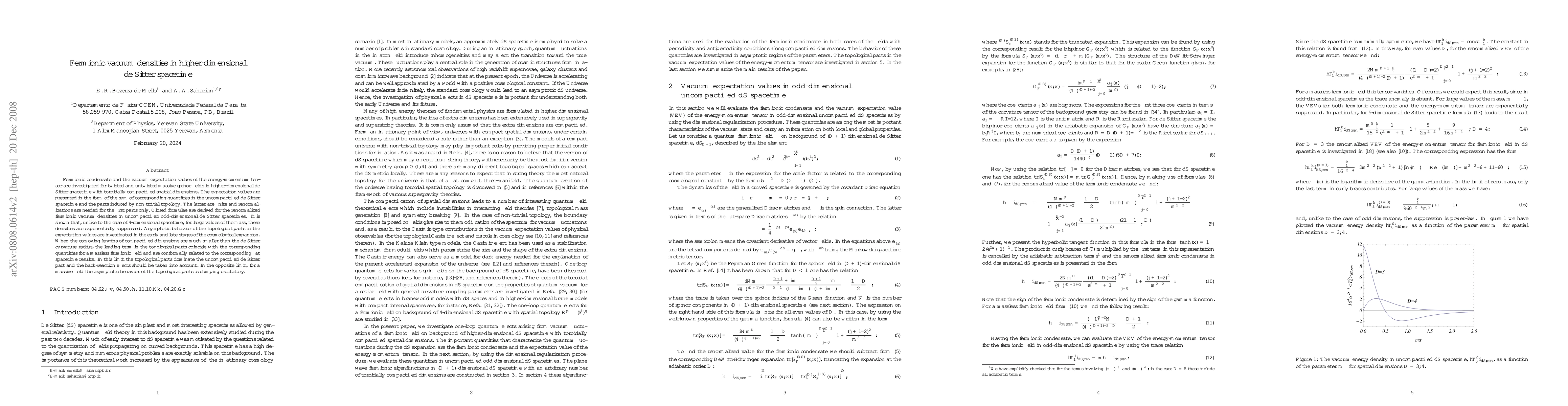 This paper investigates fermionic vacuum expectations in higher-dimensional de Sitter spacetime with toroidally compactified dimensions, deriving closed formulae for renormalized densities in odd-dimensional uncompactified spacetimes. It finds that unlike in 4D, these densities are exponentially suppressed for large masses and examines the asymptotic behavior of topological parts, which dominate in certain limits.