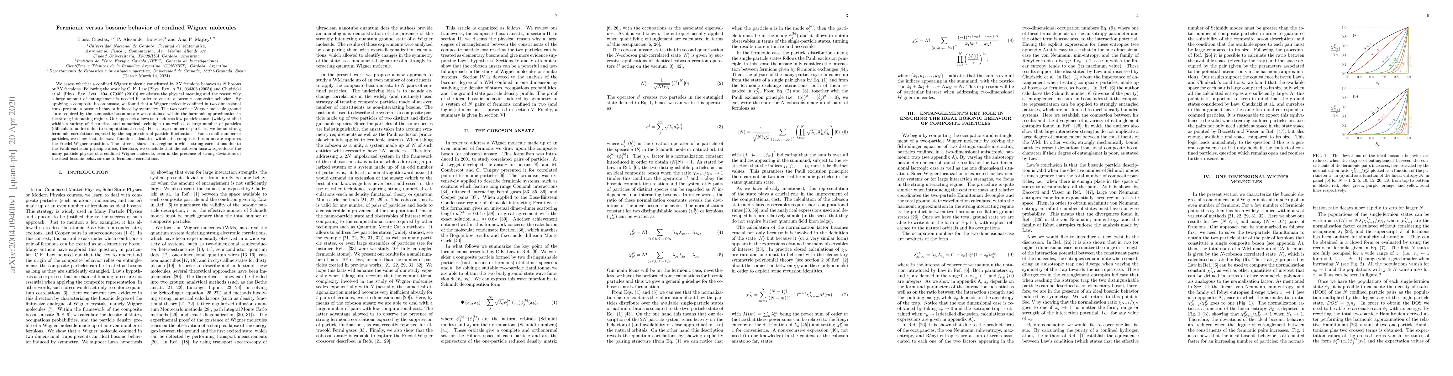 This paper investigates the behavior of confined Wigner molecules composed of $2N$ fermions, determining whether they exhibit fermionic or bosonic characteristics. The study finds that under certain conditions, these molecules can behave as bosons due to induced symmetry and entanglement, particularly in two-dimensional traps. The composite boson ansatz reveals strong fermionic correlations in large systems, while small systems show a transition captured by the ansatz, indicating its effectiveness in describing the many-particle physics despite deviations from ideal bosonic behavior.