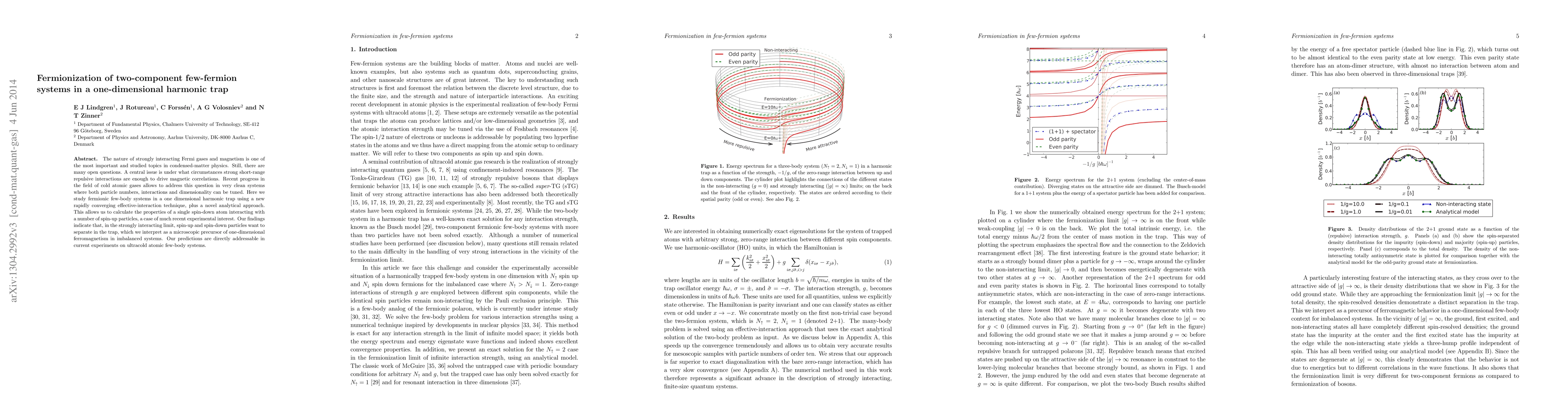 The nature of strongly interacting Fermi gases and magnetism is one of the most important and studied topics in condensed-matter physics. Still, there are many open questions. A central issue is under what circumstances strong short-range repulsive interactions are enough to drive magnetic correlations. Recent progress in the field of cold atomic gases allows to address this question in very clean systems where both particle numbers, interactions and dimensionality can be tuned. Here we study fermionic few-body systems in a one dimensional harmonic trap using a new rapidly converging effective-interaction technique, plus a novel analytical approach. This allows us to calculate the properties of a single spin-down atom interacting with a number of spin-up particles, a case of much recent experimental interest. Our findings indicate that, in the strongly interacting limit, spin-up and spin-down particles want to separate in the trap, which we interpret as a microscopic precursor of one-dimensional ferromagnetism in imbalanced systems. Our predictions are directly addressable in current experiments on ultracold atomic few-body systems.