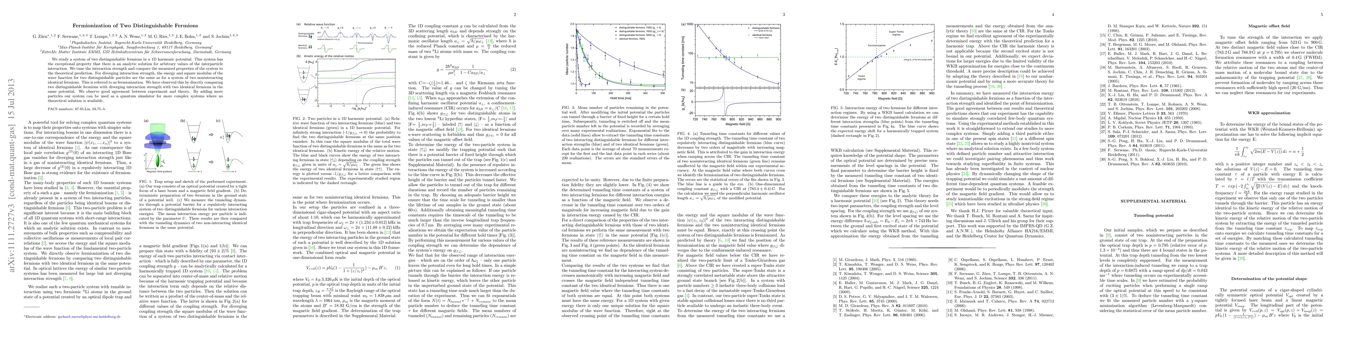Researchers studied a system of two distinguishable fermions in a 1D harmonic potential and observed 'fermionization' when the interaction strength diverges, mimicking identical fermions.