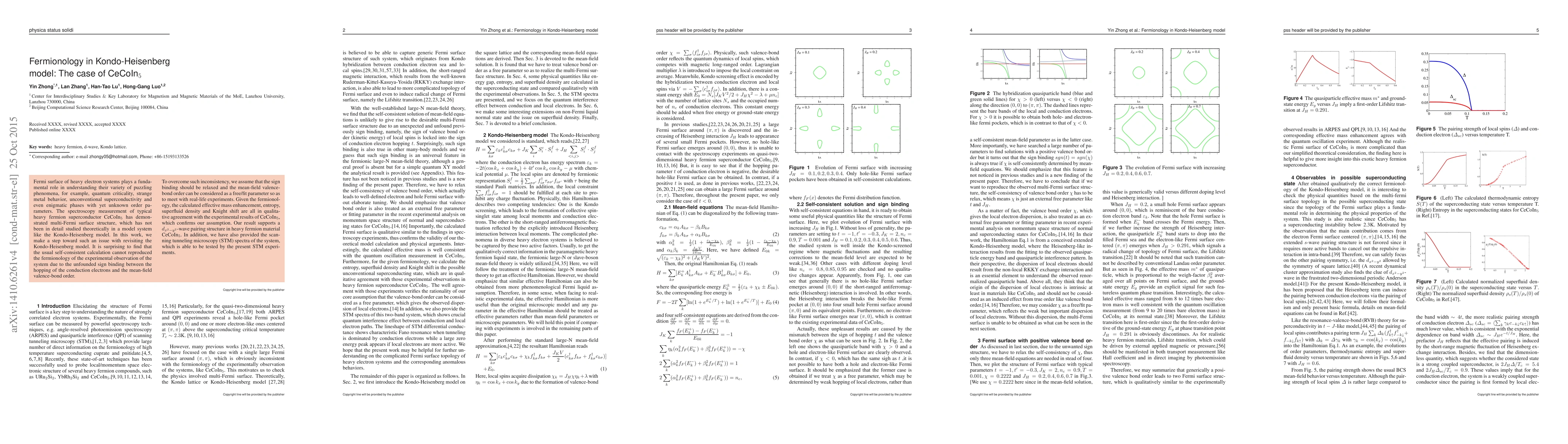 Fermi surface of heavy electron systems plays a fundamental role in understanding their variety of puzzling phenomena, for example, quantum criticality, strange metal behavior, unconventional superconductivity and even enigmatic phases with yet unknown order parameters. The spectroscopy measurement of typical heavy fermion superconductor CeCoIn$_{5}$ has demonstrated multi-Fermi surface structure, which has not been in detail studied theoretically in a model system like the Kondo-Heisenberg model. In this work, we make a step toward such an issue with revisiting the Kondo-Heisenberg model. It is surprising to find that the usual self-consistent calculation cannot reproduced the fermionology of the experimental observation of the system due to the unfounded sign binding between the hopping of the conduction electrons and the mean-field valence-bond order. To overcome such inconsistency, we assume that the sign binding should be relaxed and the mean-field valence-bond order can be considered as a free/fit parameter so as to meet with real-life experiments. Given the fermionology, the calculated effective mass enhancement, entropy, superfluid density and Knight shift are all in qualitative agreement with the experimental results of CeCoIn$_{5}$, which confirms our assumption. Our result supports a $d_{x^{2}-y^{2}}$-wave pairing structure in heavy fermion material CeCoIn$_{5}$. In addition, we have also provided the scanning tunneling microscopy (STM) spectra of the system, which is able to be tested by the present STM experiments.