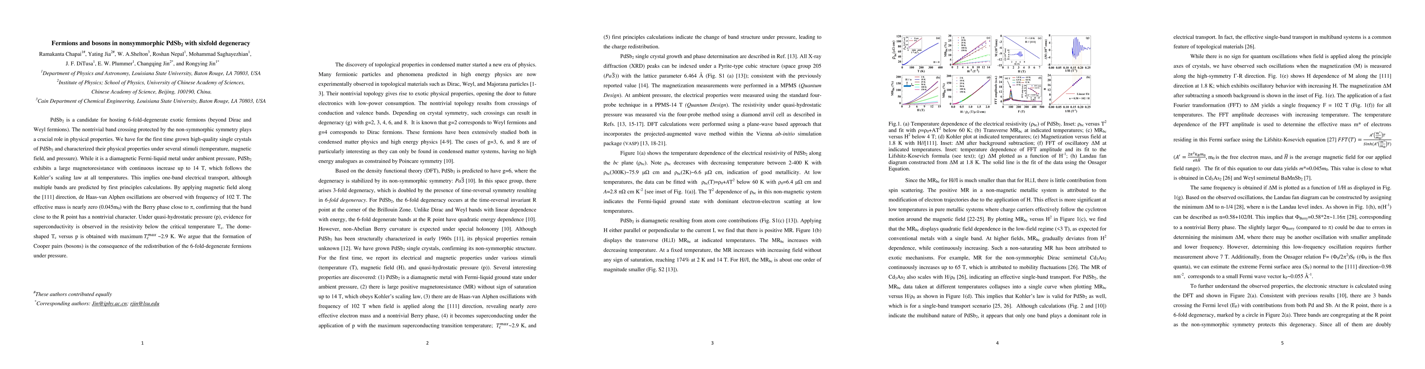 The paper investigates PdSb2, a material potentially hosting unique 6-fold-degenerate fermions. Using single crystals, researchers found PdSb2 to be a diamagnetic Fermi-liquid metal at ambient pressure with significant magnetoresistance. Under pressure, superconductivity emerges with a maximum critical temperature of ~2.9 K. The study suggests that the formation of electron pairs (bosons) results from the redistribution of these exotic fermions under pressure.