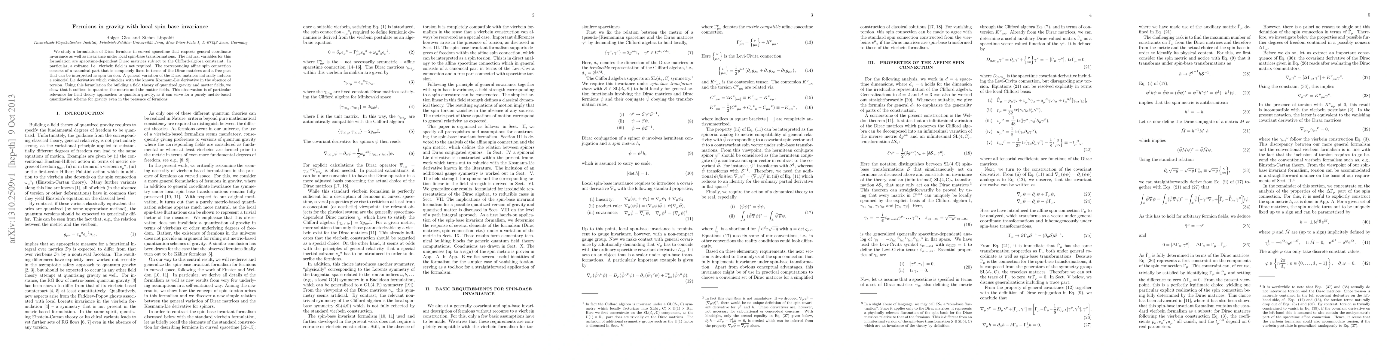 We study a formulation of Dirac fermions in curved spacetime that respects general coordinate invariance as well as invariance under local spin-base transformations. The natural variables for this formulation are spacetime-dependent Dirac matrices subject to the Clifford-algebra constraint. In particular, a coframe, i.e. vierbein field is not required. The corresponding affine spin connection consists of a canonical part that is completely fixed in terms of the Dirac matrices and a free part that can be interpreted as spin torsion. A general variation of the Dirac matrices naturally induces a spinorial Lie derivative which coincides with the known Kosmann-Lie derivative in the absence of torsion. Using this formulation for building a field theory of quantized gravity and matter fields, we show that it suffices to quantize the metric and the matter fields. This observation is of particular relevance for field theory approaches to quantum gravity, as it can serve for a purely metric-based quantization scheme for gravity even in the presence of fermions.