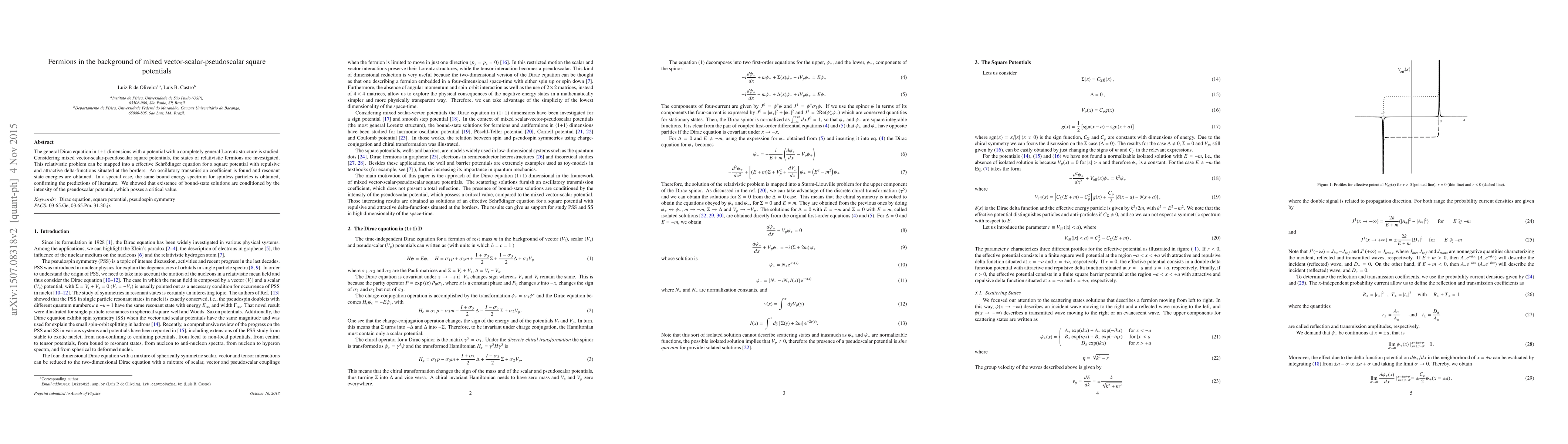This paper investigates the Dirac equation in 1+1 dimensions with mixed vector-scalar-pseudoscalar square potentials, mapping it to an effective Schrödinger equation. It finds oscillatory transmission and resonant state energies, confirming the existence of bound states conditioned by the pseudoscalar potential's intensity.
