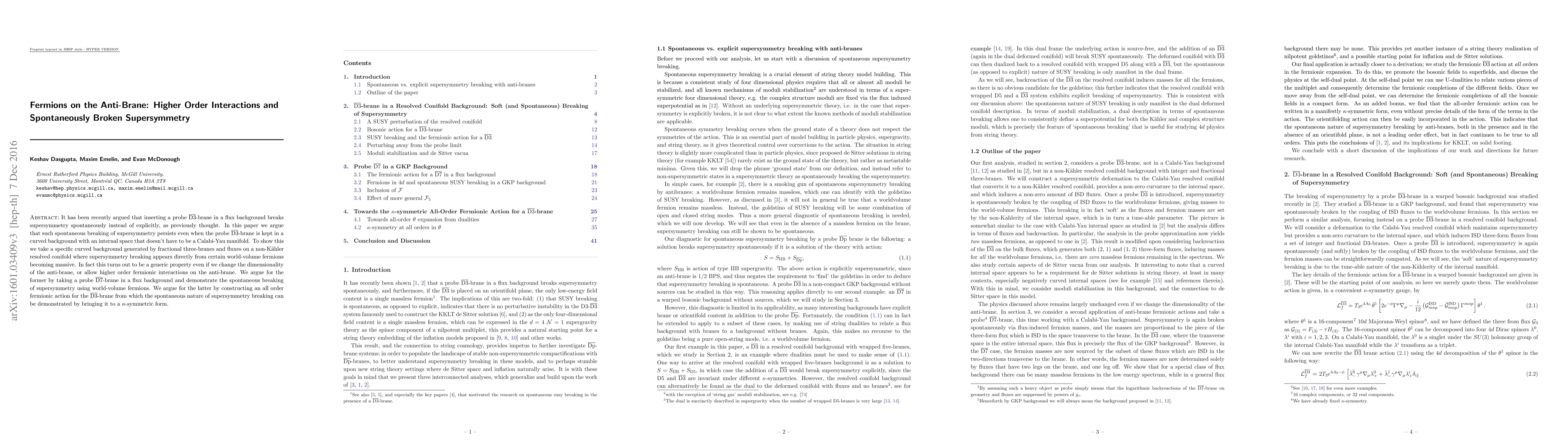 This paper investigates the spontaneous breaking of supersymmetry on probe anti-branes in curved backgrounds, demonstrating that this phenomenon persists even with higher-dimensional anti-branes and complex fermionic interactions, using a specific background generated by fractional three-branes and fluxes.