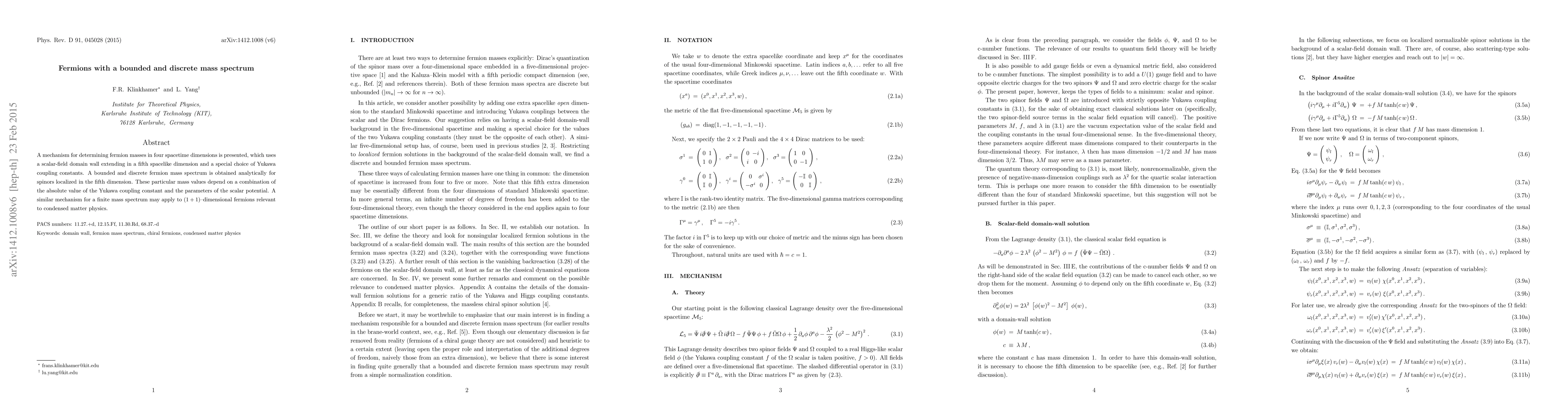 This paper proposes a mechanism to determine fermion masses using a scalar-field domain wall in a fifth dimension, yielding a bounded and discrete mass spectrum analytically. The specific mass values depend on Yukawa coupling constants and the scalar potential parameters.