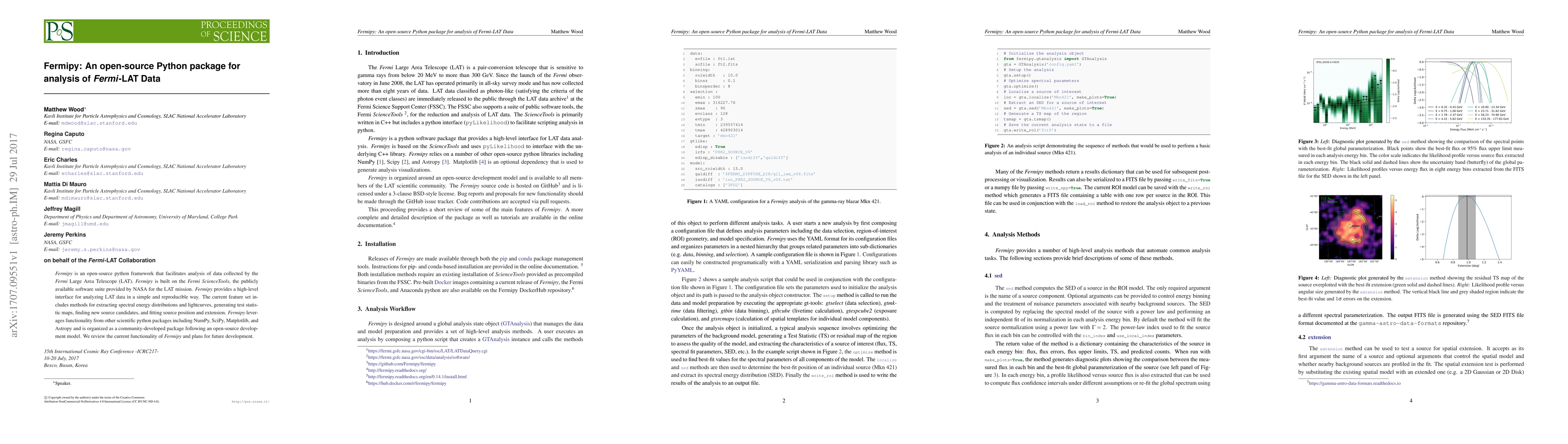 Fermipy is an open-source Python framework designed for analyzing data from the Fermi Large Area Telescope (LAT), offering a high-level interface for reproducible data analysis. It integrates with Fermi Science Tools and leverages libraries like NumPy and SciPy for advanced functionality.