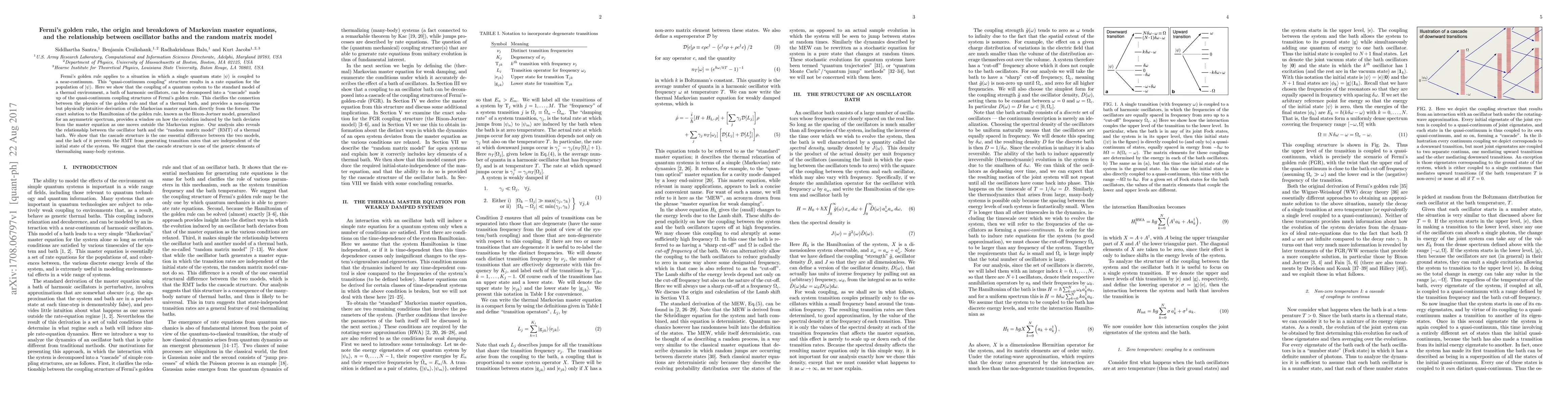 This paper explores the application of Fermi's golden rule to quantum systems coupled to thermal environments modeled by harmonic oscillator baths. It demonstrates how the Markovian master equation can be derived from the golden rule and highlights the deviation from this equation in non-Markovian regimes, using the Bixon-Jortner model. It also reveals the essential difference between oscillator baths and the random matrix model, emphasizing the cascade structure's role in thermalizing many-body systems.