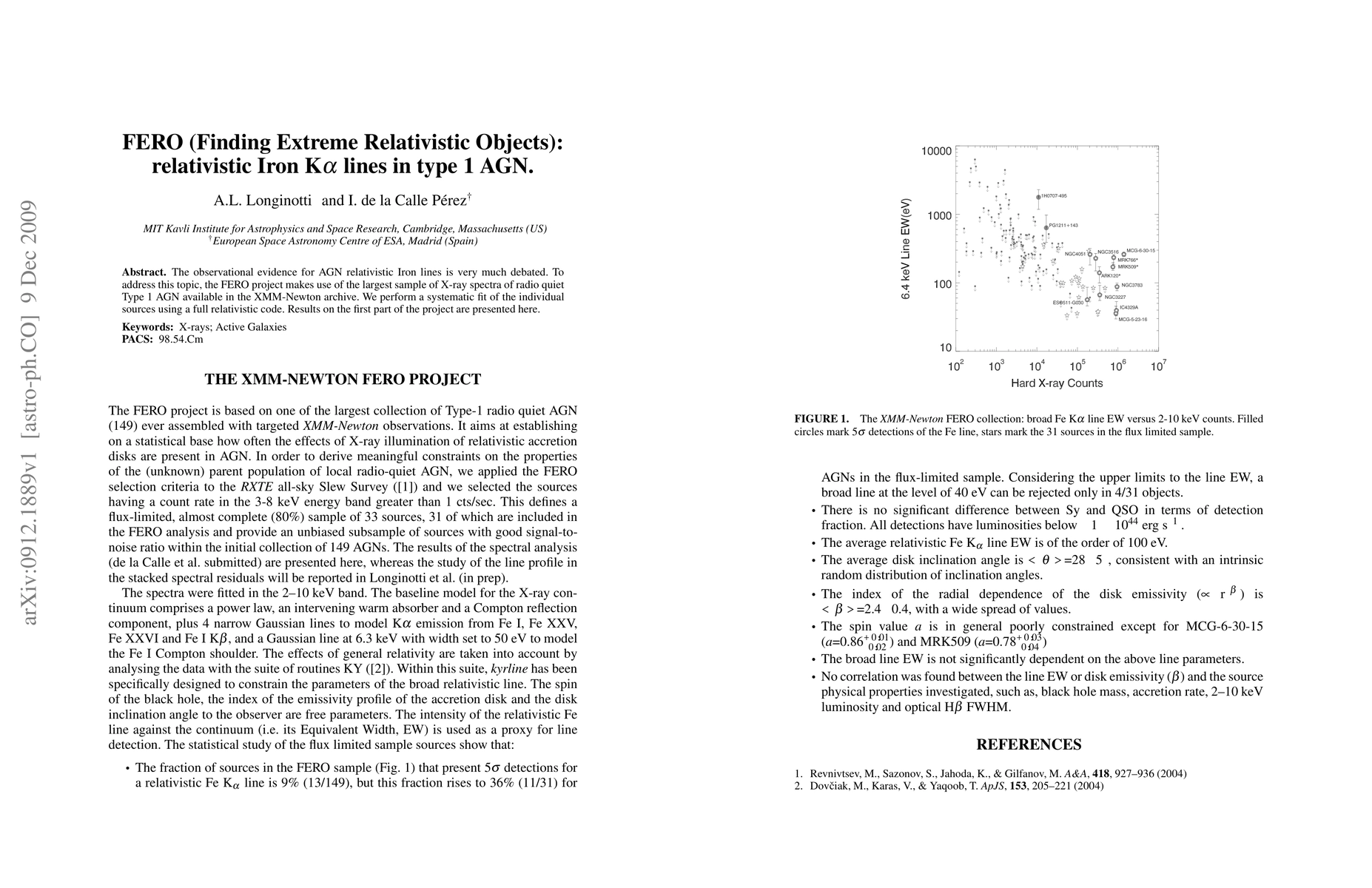 The observational evidence for AGN relativistic Iron lines is very much debated. To address this topic, the FERO project makes use of the largest sample of X-ray spectra of radio quiet Type 1 AGN available in the XMM-Newton archive. We perform a systematic fit of the individual sources using a full relativistic code. Results on the first part of the project are presented here.