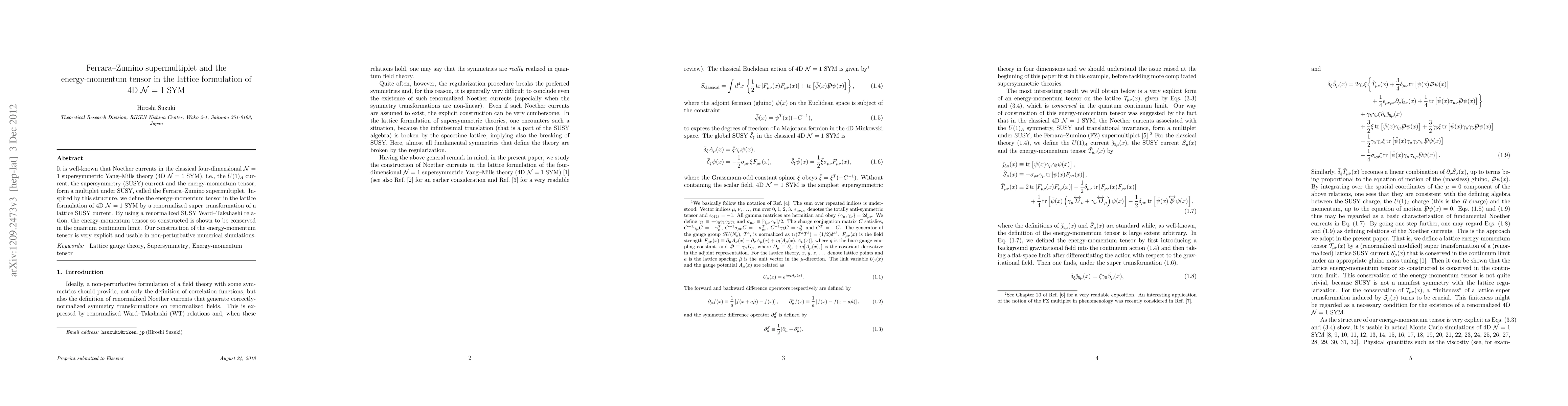 It is well-known that Noether currents in the classical four-dimensional $\mathcal{N}=1$ supersymmetric Yang--Mills theory (4D $\mathcal{N}=1$ SYM), i.e., the $U(1)_A$ current, the supersymmetry (SUSY) current and the energy-momentum tensor, form a multiplet under SUSY, called the Ferrara--Zumino supermultiplet. Inspired by this structure, we define the energy-momentum tensor in the lattice formulation of 4D $\mathcal{N}=1$ SYM by a renormalized super transformation of a lattice SUSY current. By using a renormalized SUSY Ward--Takahashi relation, the energy-momentum tensor so constructed is shown to be conserved in the quantum continuum limit. Our construction of the energy-momentum tensor is very explicit and usable in non-perturbative numerical simulations.