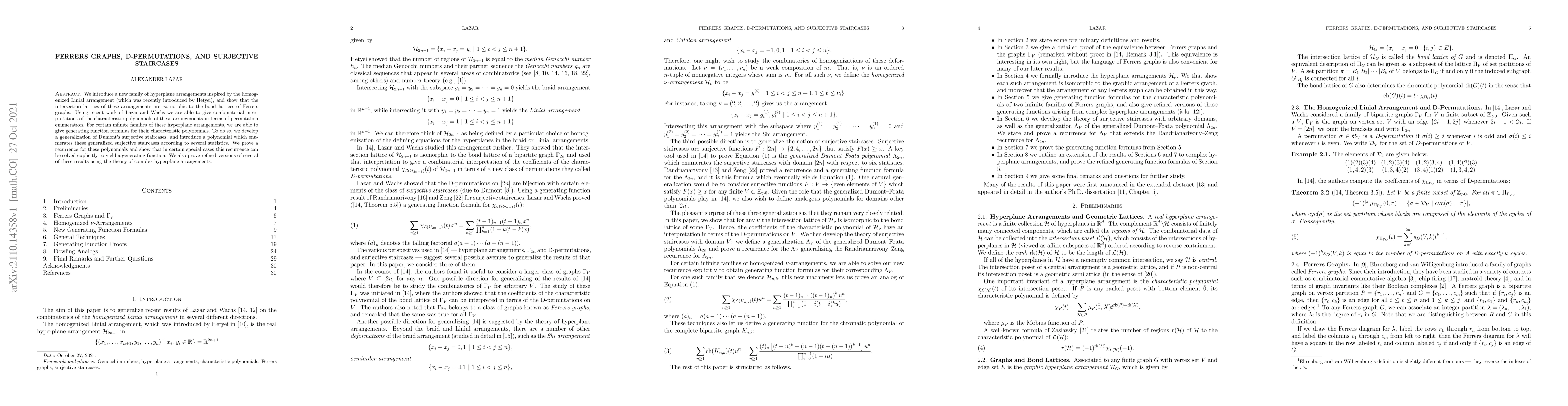 We introduce a new family of hyperplane arrangements inspired by the homogenized Linial arrangement (which was recently introduced by Hetyei), and show that the intersection lattices of these arrangements are isomorphic to the bond lattices of Ferrers graphs. Using recent work of Lazar and Wachs we are able to give combinatorial interpretations of the characteristic polynomials of these arrangements in terms of permutation enumeration. For certain infinite families of these hyperplane arrangements, we are able to give generating function formulas for their characteristic polynomials. To do so, we develop a generalization of Dumont's surjective staircases, and introduce a polynomial which enumerates these generalized surjective staircases according to several statistics. We prove a recurrence for these polynomials and show that in certain special cases this recurrence can be solved explicitly to yield a generating function. We also prove refined versions of several of these results using the theory of complex hyperplane arrangements.