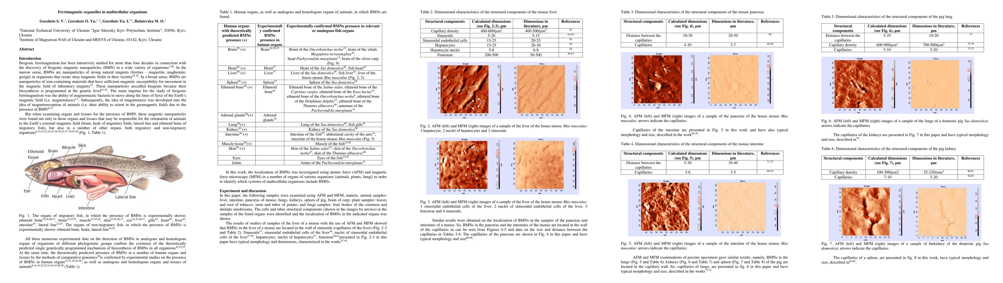 This research, using atomic force microscopy and magnetic force microscopy, discovers that biogenic magnetic nanoparticles form chains within animal capillary walls, plant conducting tissue, and fungi. These chains are proposed as ferrimagnetic organelles serving a specific function in the organisms' transport systems.