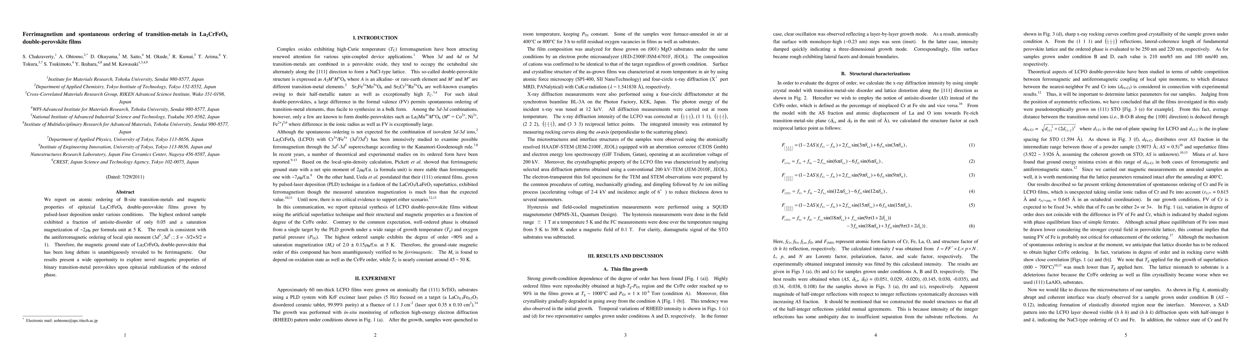 Development of a method to stabilize highly ordered NaCl-type double-perovskite phases in La2CrFeO6 thin films, along with systematic characterization of their structural and magnetic properties.