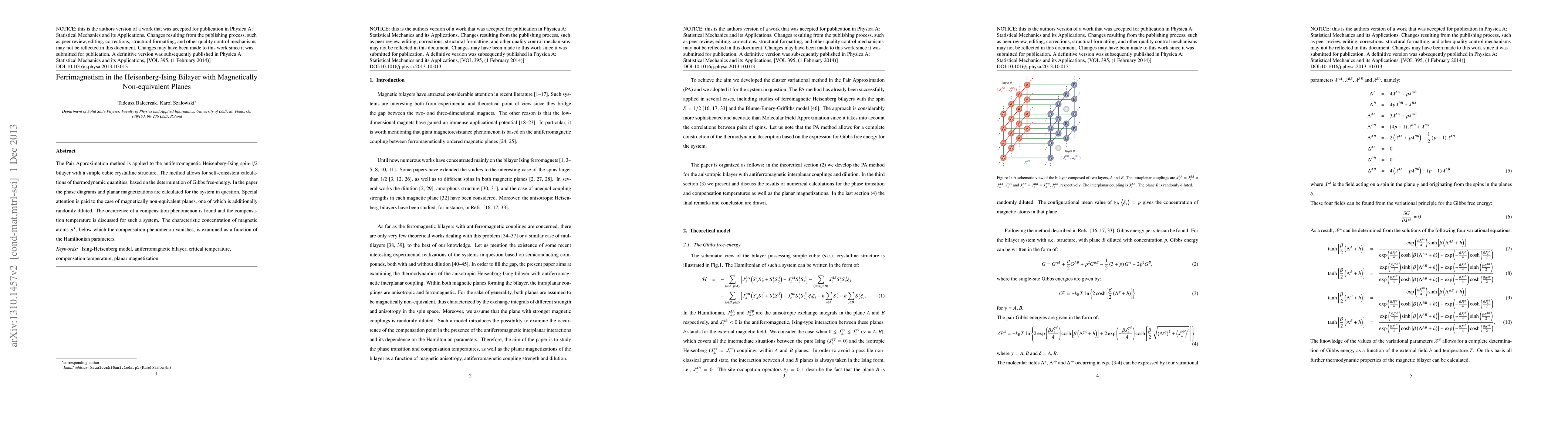 The Pair Approximation method is applied to the antiferromagnetic Heisenberg-Ising spin-1/2 bilayer with a simple cubic crystalline structure. The method allows for self-consistent calculations of thermodynamic quantities, based on the determination of Gibbs free-energy. In the paper the phase diagrams and planar magnetizations are calculated for the system in question. Special attention is paid to the case of magnetically non-equivalent planes, one of which is additionally randomly diluted. The occurrence of a compensation phenomenon is found and the compensation temperature is discussed for such a system. The characteristic concentration of magnetic atoms $p^{\star}$, below which the compensation phenomenon vanishes, is examined as a function of the Hamiltonian parameters.