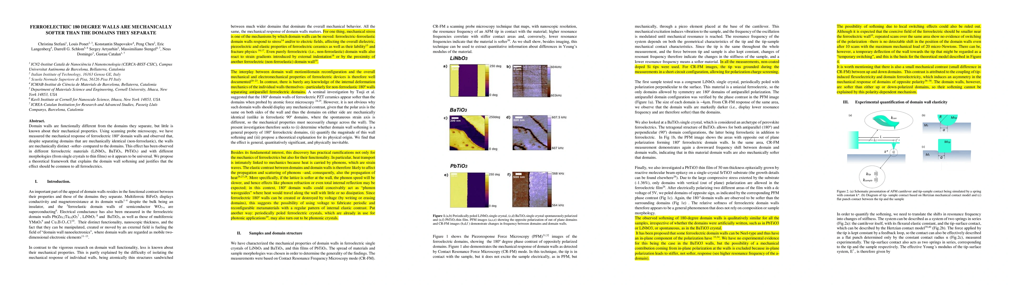 This study reveals that ferroelectric 180 degree domain walls are mechanically softer than the domains they separate, using scanning probe microscopy across various materials. The observed softening effect is universal across different ferroelectric materials and morphologies, prompting a theoretical framework to explain this phenomenon.