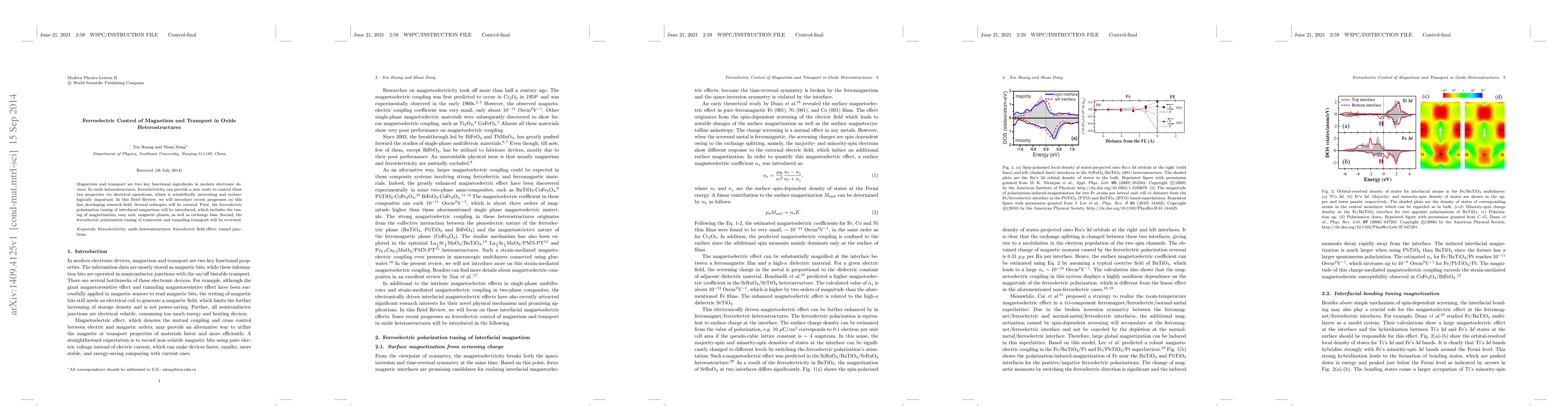 This paper reviews recent advances in using ferroelectricity to control magnetism and transport in oxide heterostructures, focusing on the effects of ferroelectric polarization on interfacial magnetism and on transverse and tunneling transport properties.
