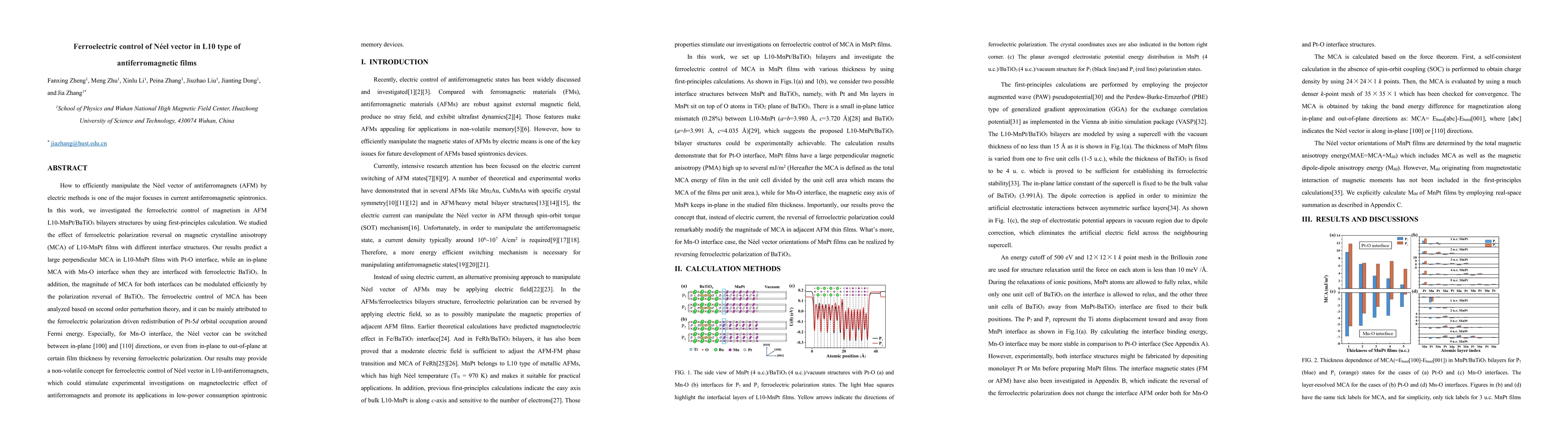 How to efficiently manipulate the N\'eel vector of antiferromagnets (AFM) by electric methods is one of the major focuses in current antiferromagnetic spintronics. In this work, we investigated the ferroelectric control of magnetism in AFM L10-MnPt/BaTiO3 bilayers structures by using first-principles calculation. We studied the effect of ferroelectric polarization reversal on magnetic crystalline anisotropy (MCA) of L10-MnPt films with different interface structures. Our results predict a large perpendicular MCA in L10-MnPt films with Pt-O interface, while an in-plane MCA with Mn-O interface when they are interfaced with ferroelectric BaTiO3. In addition, the magnitude of MCA for both interfaces can be modulated efficiently by the polarization reversal of BaTiO3. The ferroelectric control of MCA has been analyzed based on second order perturbation theory, and it can be mainly attributed to the ferroelectric polarization driven redistribution of Pt-5d orbital occupation around Fermi energy. Especially, for Mn-O interface, the N\'eel vector can be switched between in-plane [100] and [110] directions, or even from in-plane to out-of-plane at certain film thickness by reversing ferroelectric polarization. Our results may provide a non-volatile concept for ferroelectric control of N\'eel vector in L10-antiferromagnets, which could stimulate experimental investigations on magnetoelectric effect of antiferromagnets and promote its applications in low-power consumption spintronic memory devices.
