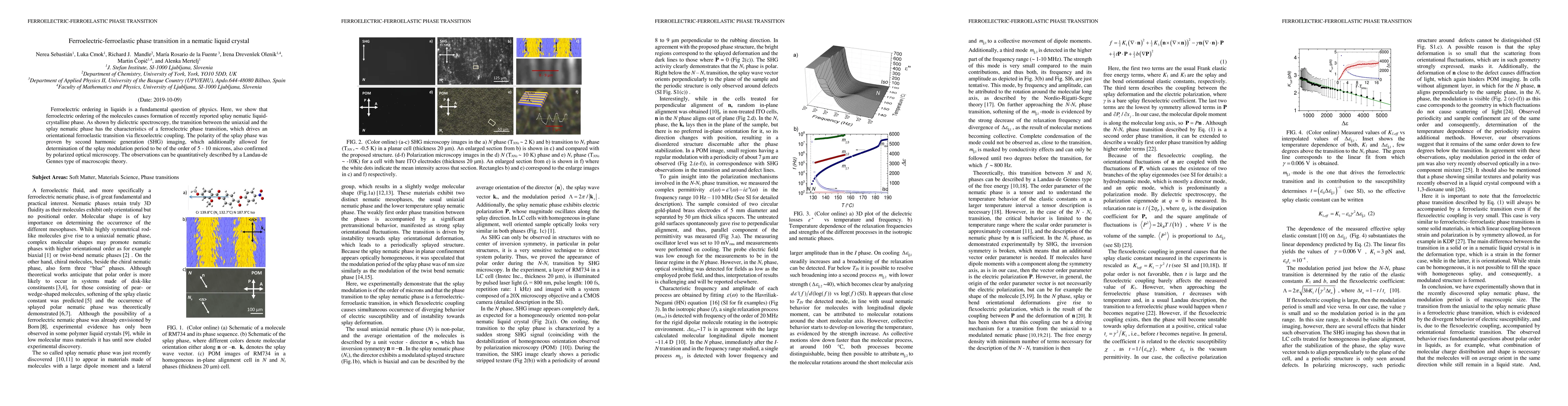 This paper demonstrates that ferroelectric ordering in nematic liquid crystals induces a phase transition to a splay nematic phase, characterized by a ferroelectric phase transition and an associated ferroelastic transition driven by flexoelectric coupling. The polarity of the splay phase is confirmed via second harmonic generation imaging and the findings are quantitatively modeled using a Landau-de Gennes theory.