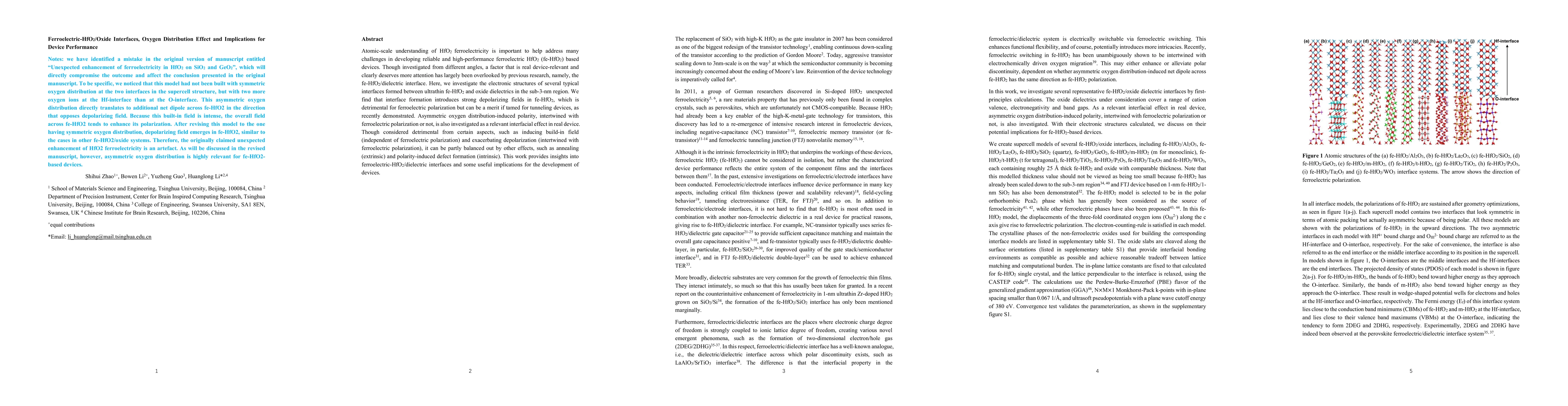 This paper investigates the electronic structures at ferroelectric HfO2/oxide dielectric interfaces, revealing that interface formation introduces depolarizing fields affecting ferroelectric polarization. It also explores how asymmetric oxygen distribution can influence device performance, providing insights that could guide the development of more reliable ferroelectric HfO2 devices.