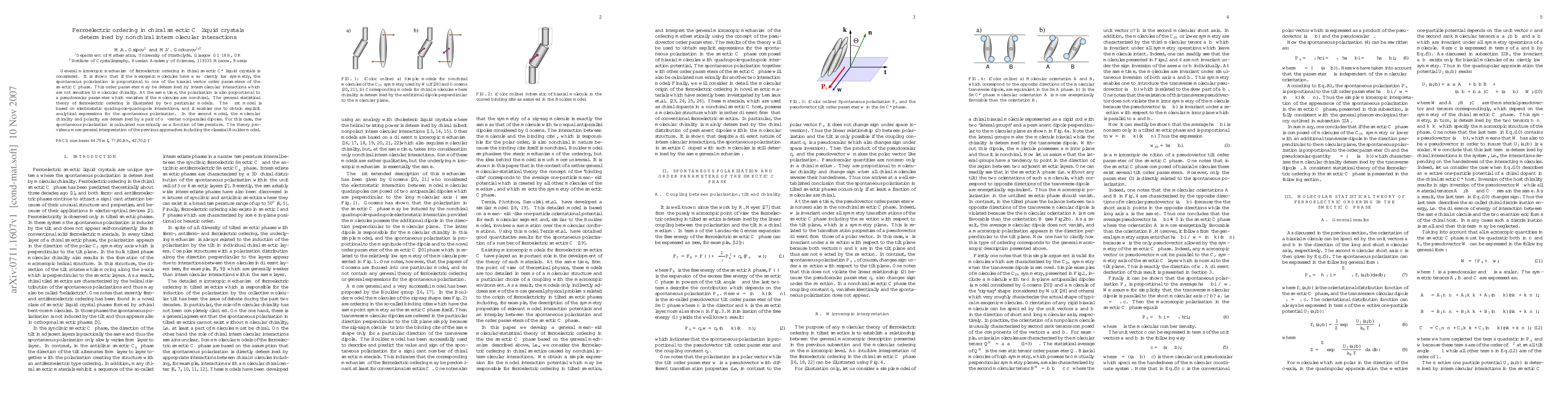 This paper explores the ferroelectric ordering in chiral smectic C* liquid crystals, demonstrating that nonchiral intermolecular interactions can determine the spontaneous polarization, which is proportional to a biaxial vector order parameter. The study provides analytical and numerical models to illustrate this mechanism, offering a broader interpretation of previous theories.