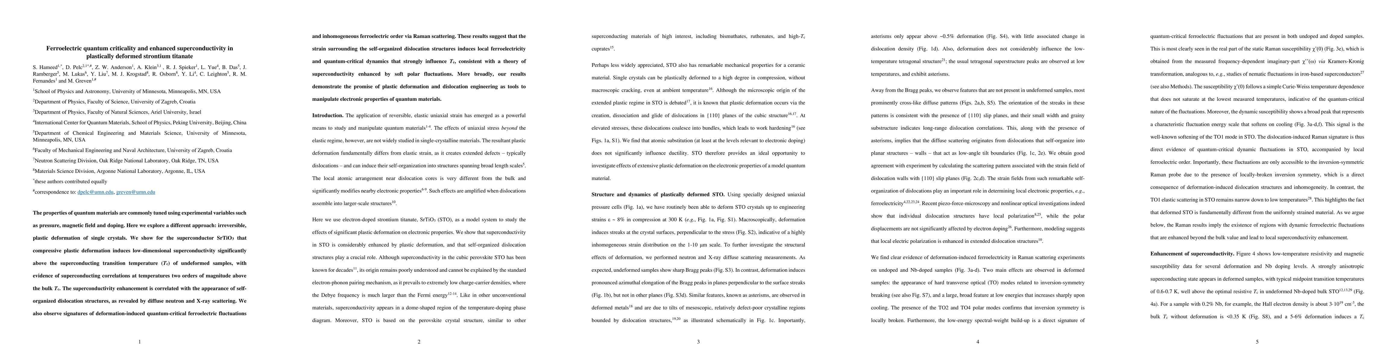 Plastic deformation of strontium titanate creates low-dimensional superconductivity significantly above its normal transition temperature, with evidence of self-organized dislocation structures and ferroelectric fluctuations.