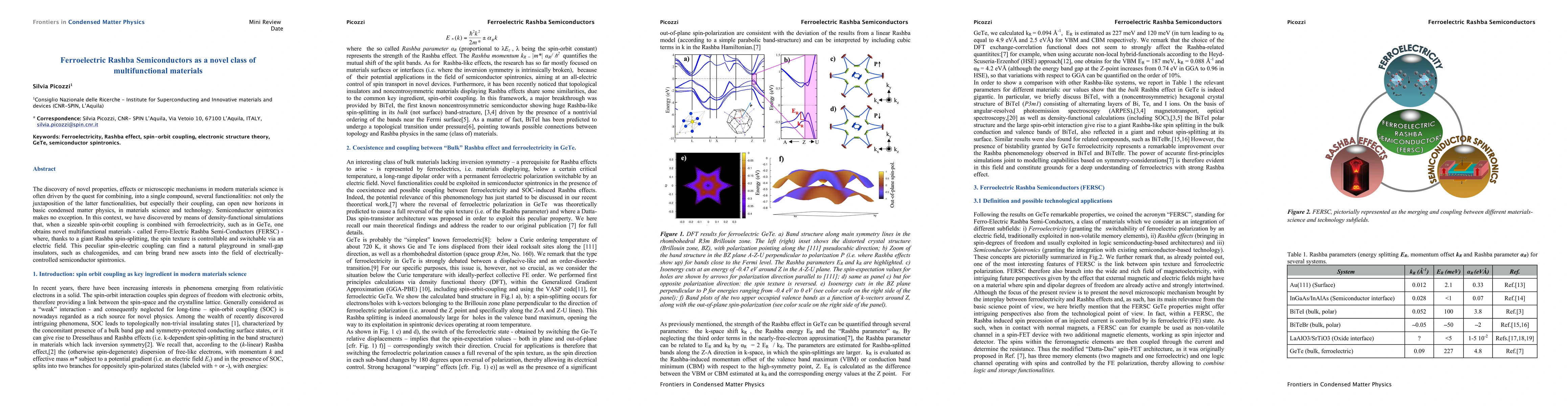 The discovery of novel properties, effects or microscopic mechanisms in modern materials science is often driven by the quest for combining, into a single compound, several functionalities: not only the juxtaposition of the latter functionalities, but especially their coupling, can open new horizons in basic condensed matter physics as well as in technology. Semiconductor spintronics makes no exception. In this context, we have discovered by means of density-functional simulations that, when a sizeable spin-orbit coupling is combined with ferroelectricity, such as in GeTe, one obtains novel multifunctional materials - called Ferro-Electric Rashba Semi-Conductors (FERSC) - where, thanks to a giant Rashba spin-splitting, the spin texture is controllable and switchable via an electric field. This peculiar spin-electric coupling can find a natural playground in small-gap insulators, such as chalcogenides, and can bring brand new assets into the field of electrically-controlled semiconductor spintronics