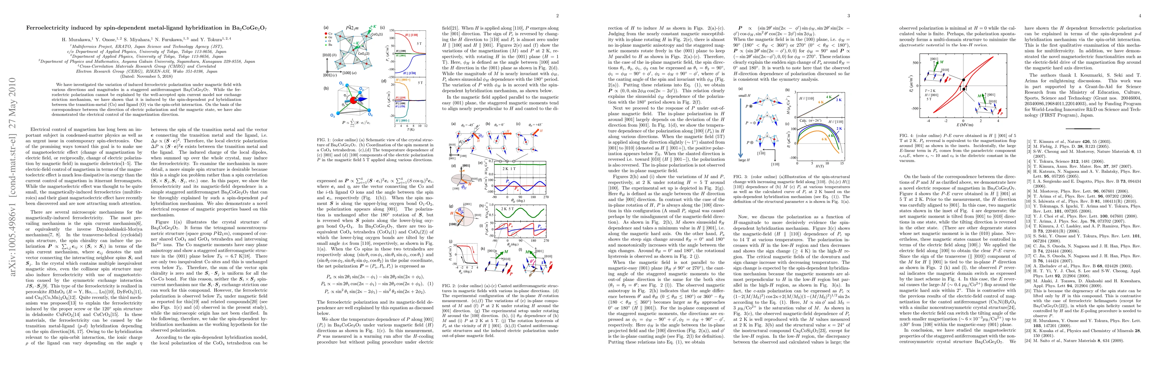 This paper investigates ferroelectric polarization in Ba$_2$CoGe$_2$O$_7$ under magnetic fields, revealing that it arises from spin-dependent $p$-$d$ hybridization between Co and O, rather than via conventional spin current or exchange striction mechanisms. The study also demonstrates electrical control over the magnetization direction based on the magnetic state.