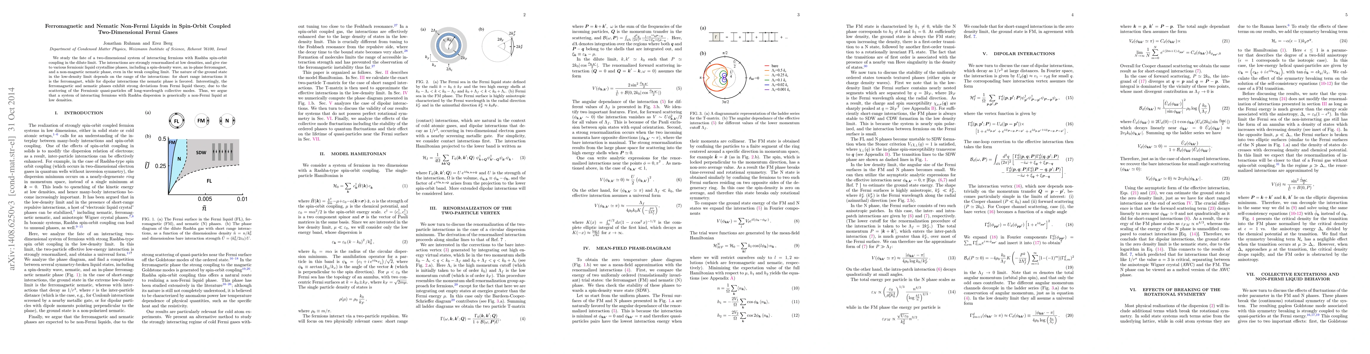 Researchers discovered that a system of interacting fermions with Rashba spin-orbit coupling can form exotic non-Fermi liquids at low densities, including ferromagnetic and nematic phases.