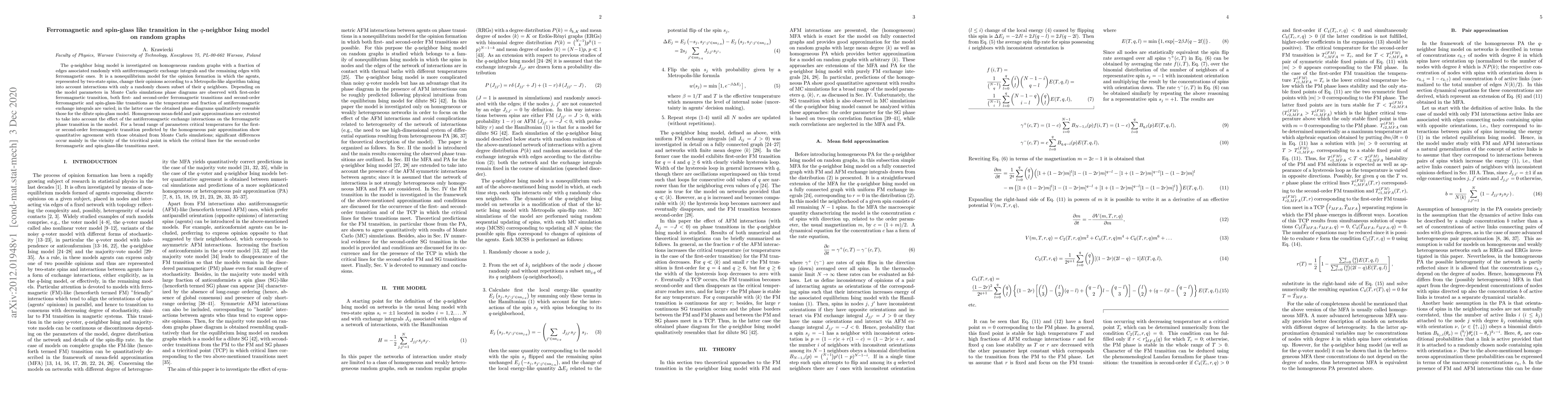 The $q$-neighbor Ising model on random graphs exhibits ferromagnetic and spin-glass like transitions as temperature and interaction parameters vary, with critical temperatures predicted by approximations agreeing with Monte Carlo simulations in some cases.