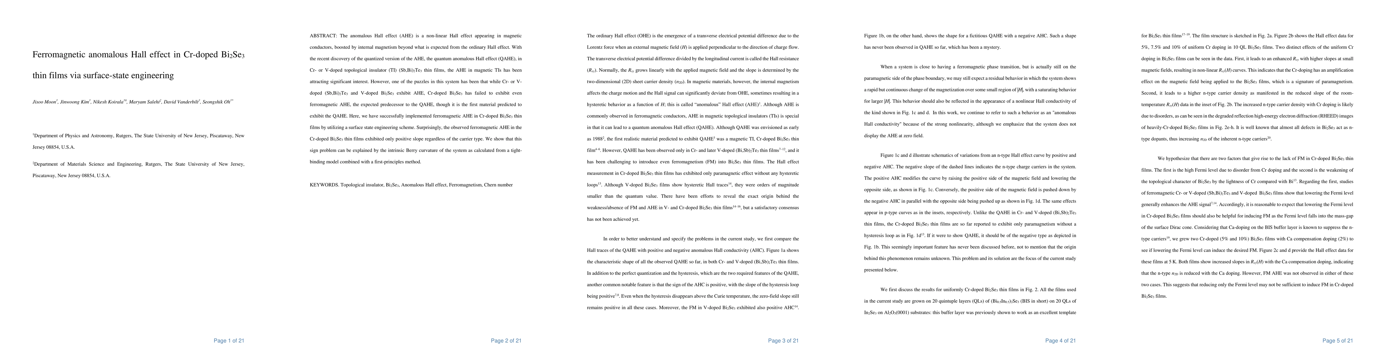 This paper demonstrates the successful realization of ferromagnetic anomalous Hall effect (AHE) in Cr-doped Bi$_2$Se$_3$ thin films through surface-state engineering, addressing a longstanding puzzle. The observed AHE exhibits a consistently positive slope, which is explained by the intrinsic Berry curvature of the material, as modeled by a combination of tight-binding and first-principles calculations.