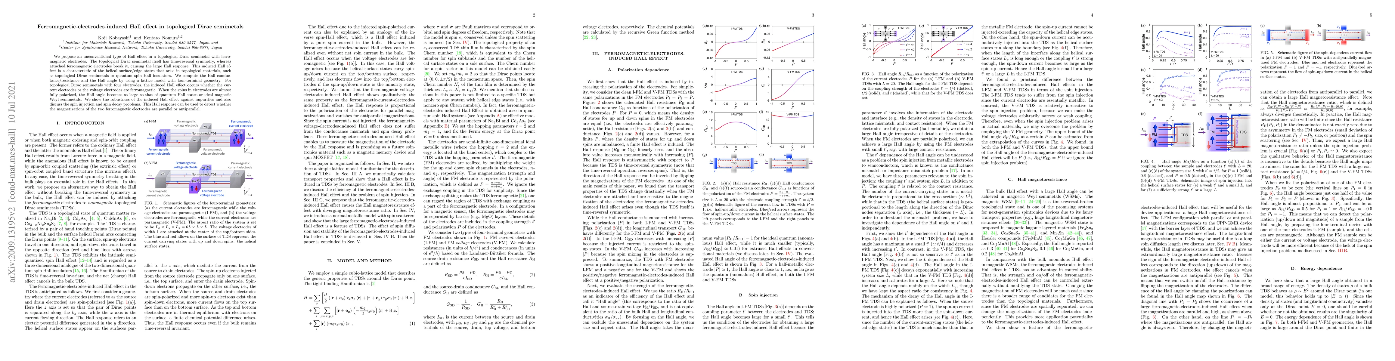 This study investigates the ferromagnetic-electrodes-induced Hall effect in topological Dirac semimetals, revealing a significant Hall response due to the breaking of time-reversal symmetry by ferromagnetic electrodes. The research demonstrates the robustness of this effect and its potential for detecting electrode magnetization orientations.