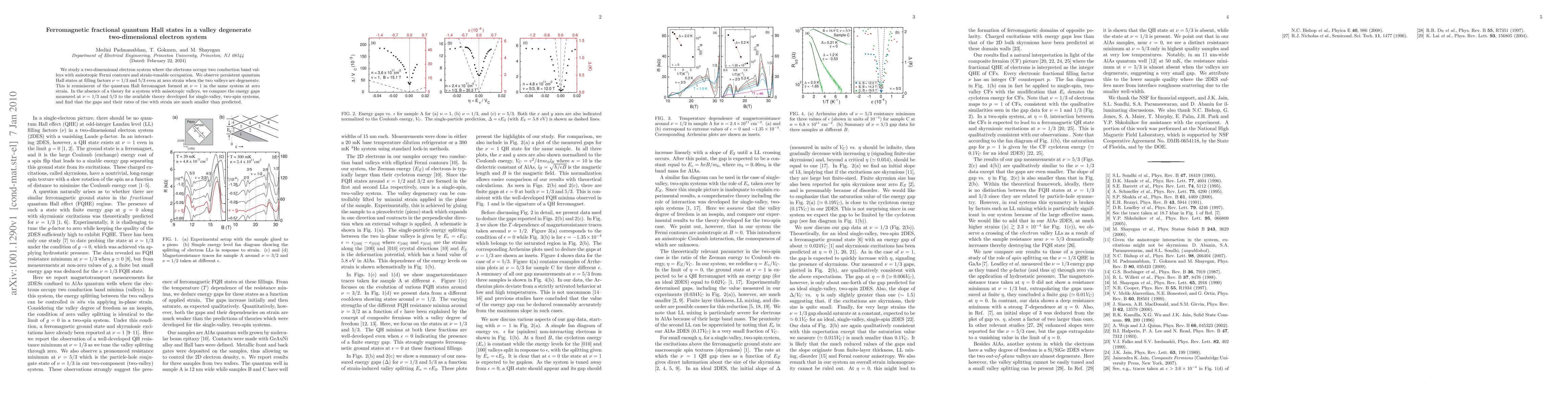 This research investigates a two-dimensional electron system in degenerate valleys, revealing persistent quantum Hall states at filling factors ν = 1/3 and 5/3, akin to the ferromagnet at ν = 1. The observed energy gaps at these fillings are significantly smaller than predicted by single-valley theories.