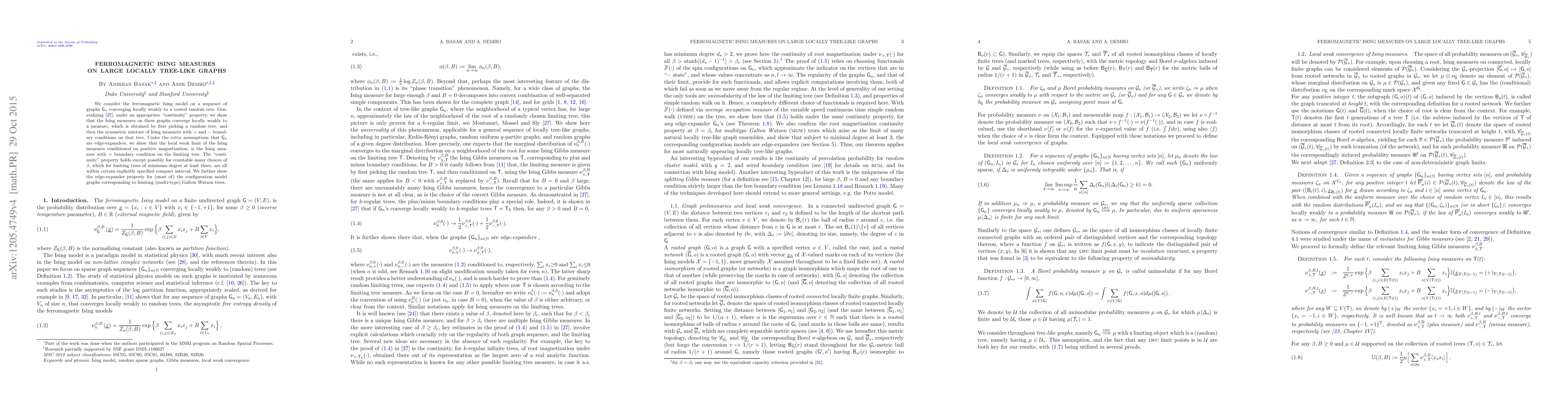 This paper studies the ferromagnetic Ising model on large locally tree-like graphs converging to a rooted random tree, proving that the Ising measures converge to a symmetric mixture of measures with $+$ and $-$ boundary conditions. Under edge-expander assumptions, the conditioned positive magnetization limit converges to the $+$ boundary condition measure, with the "continuity" property holding for most $\beta$ values.