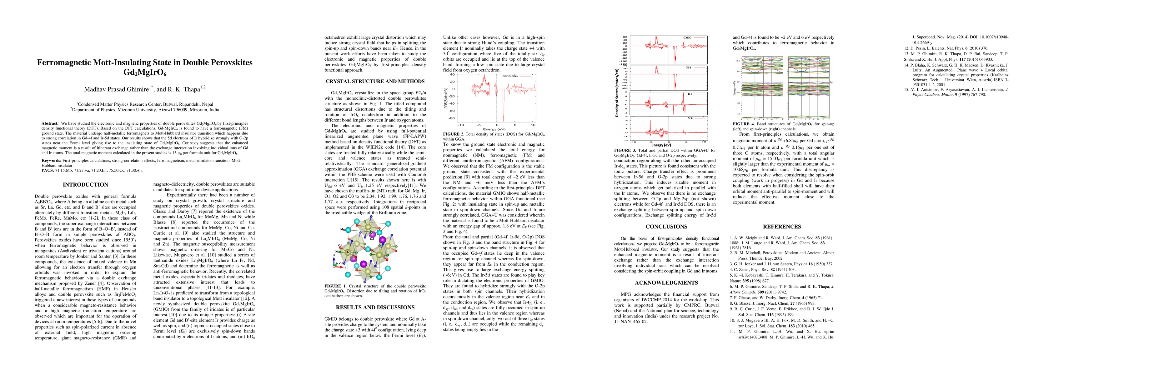 This work distinguishes itself by exploring the electronic and magnetic properties of Gd2MgIrO6, a double perovskite oxide, and proposing its ferromagnetic Mott-Hubbard insulator state, which is a novel finding in the context of double perovskites.