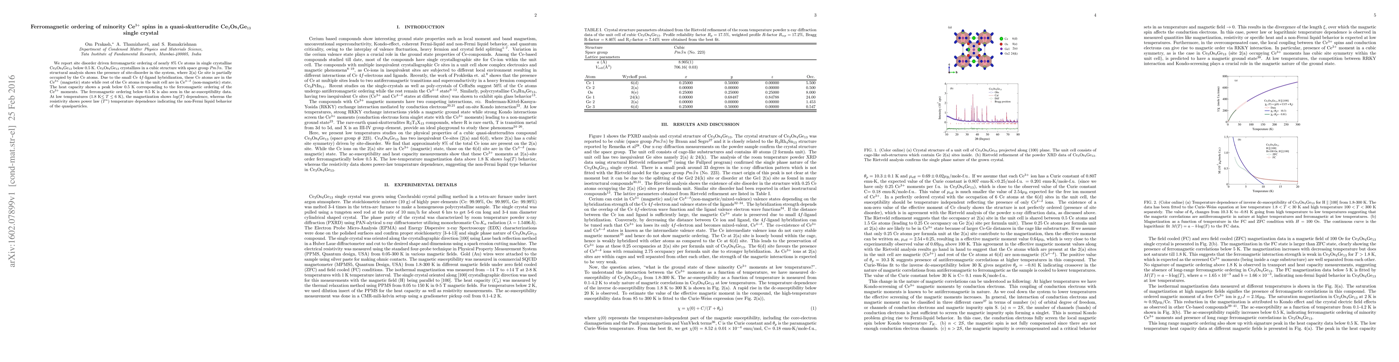 This study reports the ferromagnetic ordering of minority Ce$^{3+}$ spins in Ce${_3}$Os${_4}$Ge$_{13}$ below 0.5 K, driven by site disorder where Ce atoms occupy Ge sites. The Ce$^{3+}$ moments exhibit ferromagnetic ordering evidenced by heat capacity and ac-susceptibility peaks.