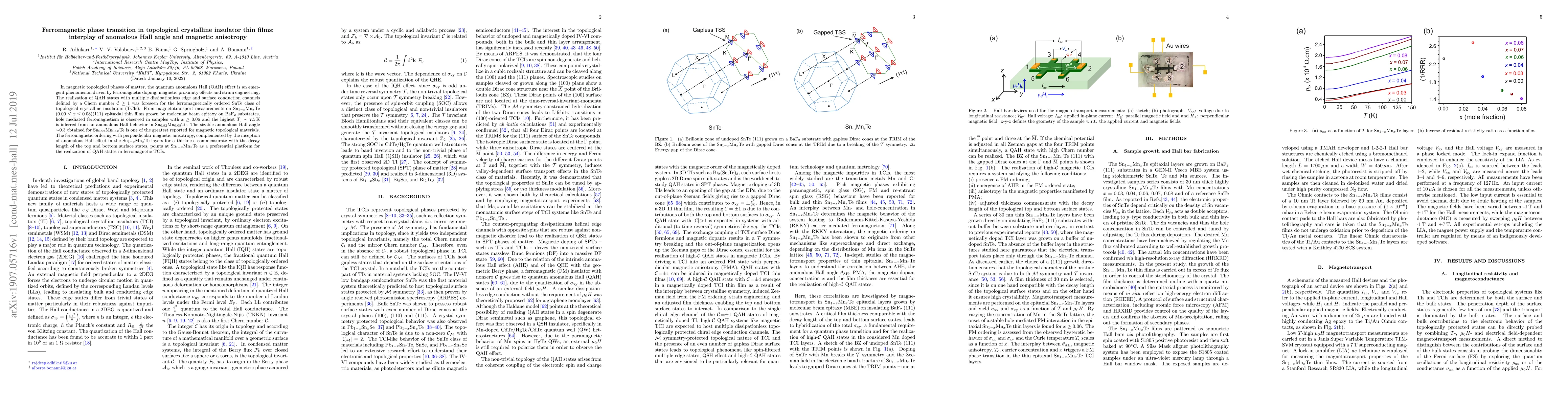 This paper investigates ferromagnetic phase transitions in Sn$_{1-x}$Mn$_{x}$Te thin films, revealing the interplay between the anomalous Hall effect and magnetic anisotropy. The study finds that Sn$_{0.92}$Mn$_{0.08}$Te exhibits significant anomalous Hall angle and high critical temperature for ferromagnetism, suggesting it as a promising material for quantum anomalous Hall states.