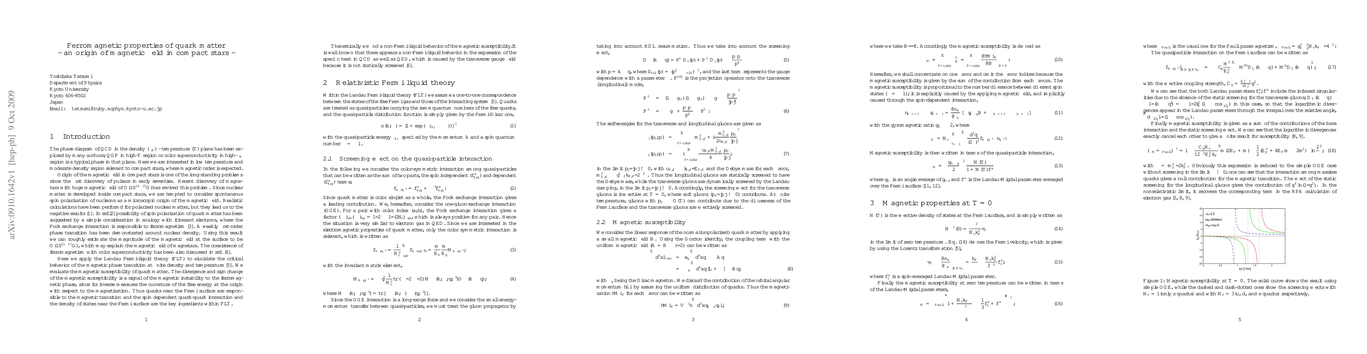 Magnetic properties of quark matter are studied within the Landau Fermi-liquid theory, and magnetic phase diagram of QCD is presented in the density-temperature plane. The screening effect for gluon propagator is emphasized to see the characteristic behavior of the magnetic susceptibility; novel non-Fermi-liquid behavior is observed at finite temperature. Some implications on the origin of the magnetic field in compact stars, especially magnetars, are briefly discussed.